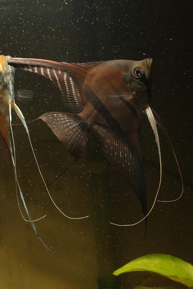 Скалярия, это рыба которая живёт и хорошо себя чувствует в полумраке, для показа всей красоты интенсивность света нужно увеличить,