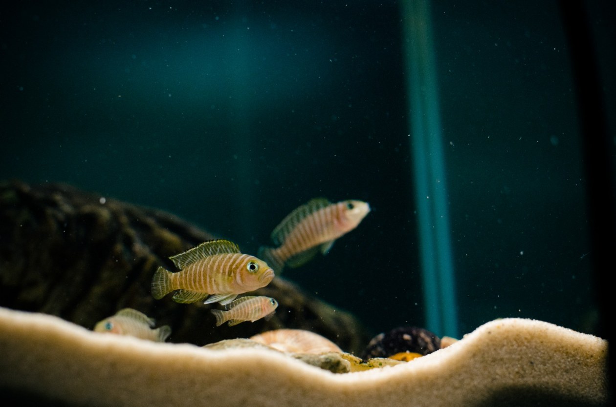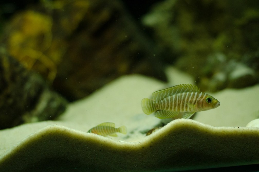 2. Самки знаходяться в протилежни частинах акваріуму, а господар зайняв середину.