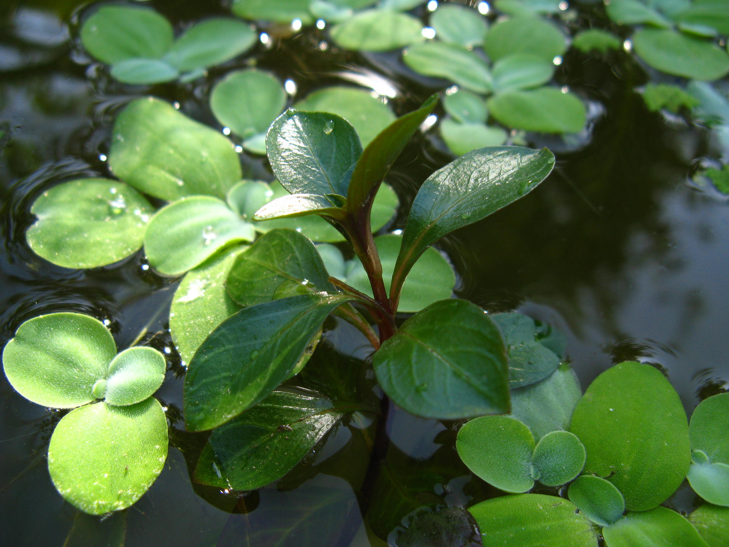 Неделю назад закинул пучок Пистии. Эта вроде более жароустойчивая и "болотоустойчивая", чем Лимнобиум, который пропал. Людвигии хорошо растут, особенно побеги с воздушными листьями. На последнем фото Людвигия ползучая.