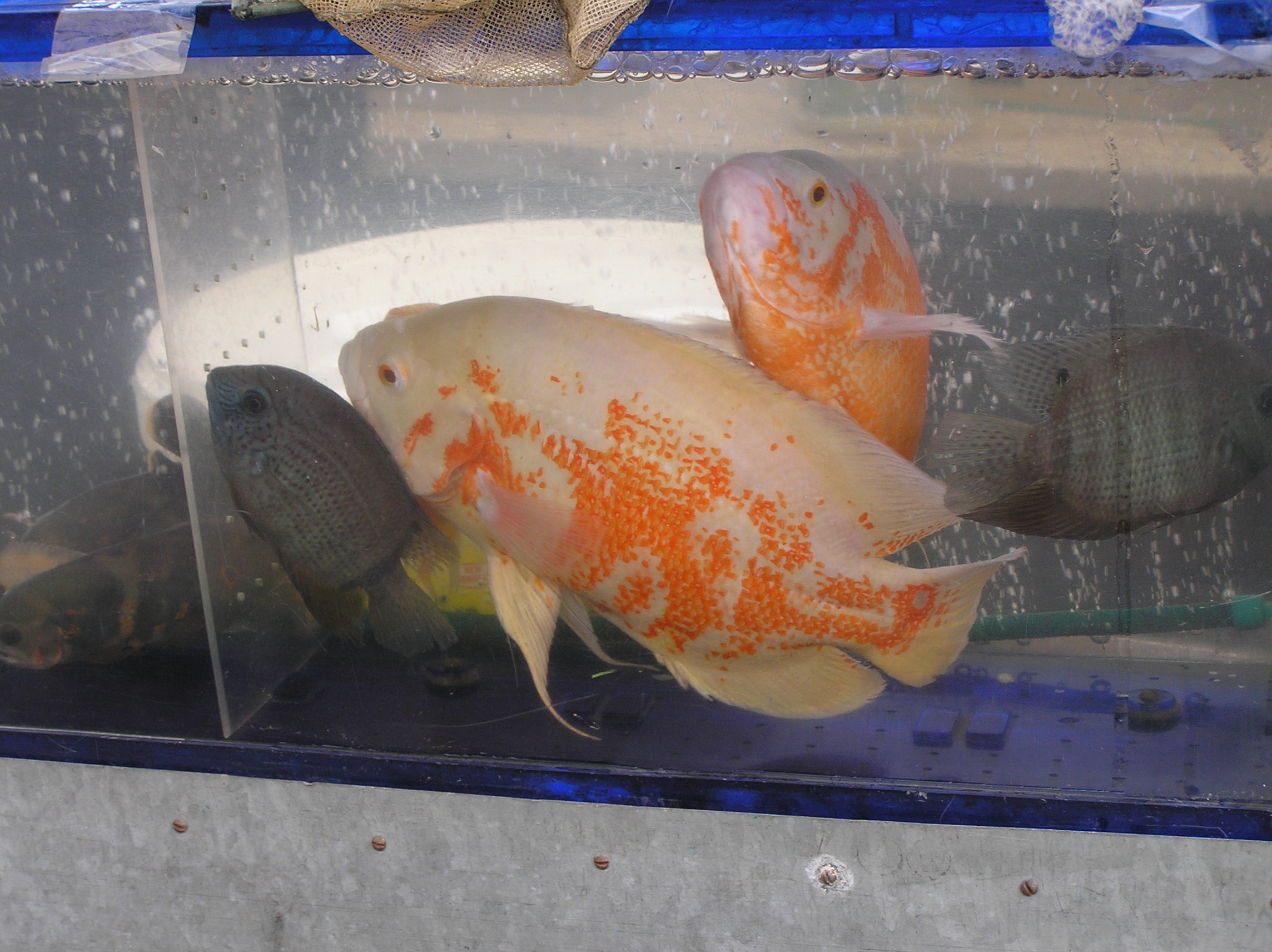 это глюк или астронотус с окрасом блю неон (правый верхний угол)?