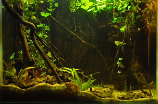 чорна вода - так має бути, саме через таку воду й освітлення рибки виглядають по іншому й неонові фарби мають горіти...