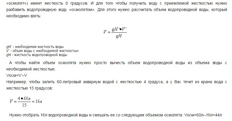 Т.е. берете 3,5 л водопроводной воды и смешиваете с 9 л осмолята. Пропорция 3,5/9.