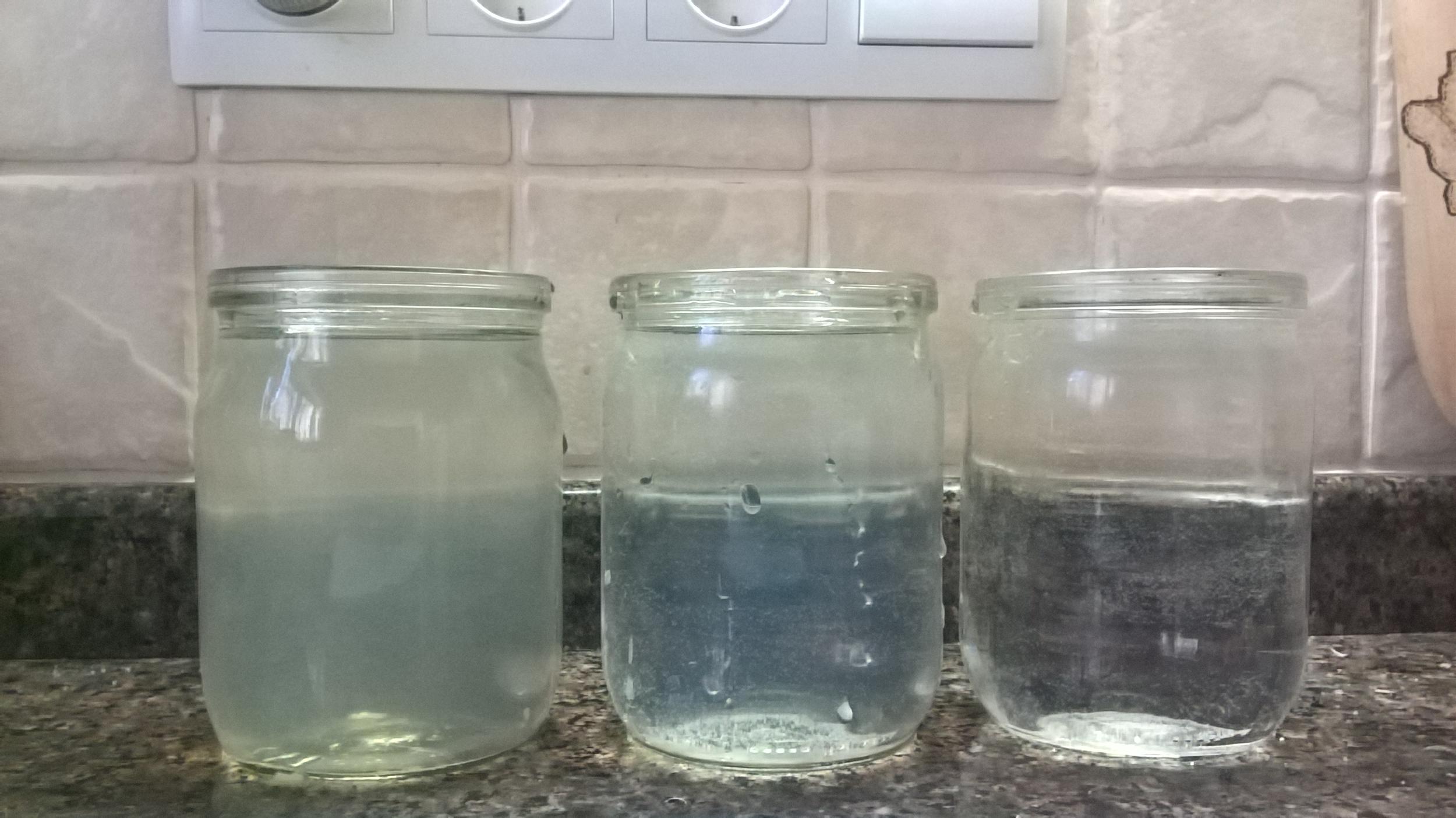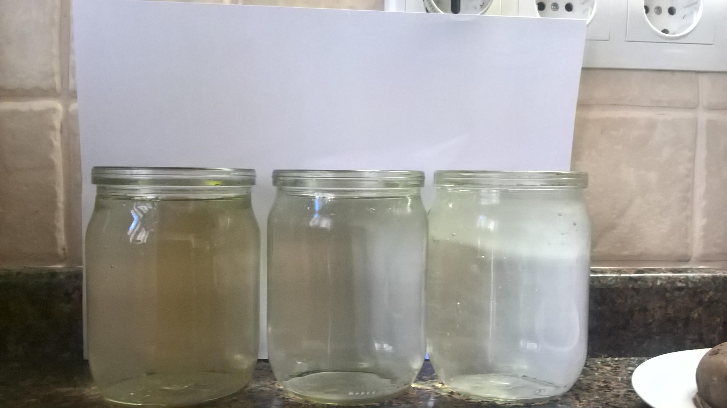 Воду подложка красит намного меньше чем предыдущая версия. (первое фото). Можно сказать, что почти не красит. Во всяком случае пока. Органику выделяет, но в пределах разумного, не запредельно (2,3 фото. Проба на коагулянт. Второе фото сразу после добавления, третье-после отстаивания). На всех трех фото слева направо- вода из аквариума, вода из водопровода. Правая емкость- контрольная. Вода из водопровода для оценки помутнения. Наблюдаю.