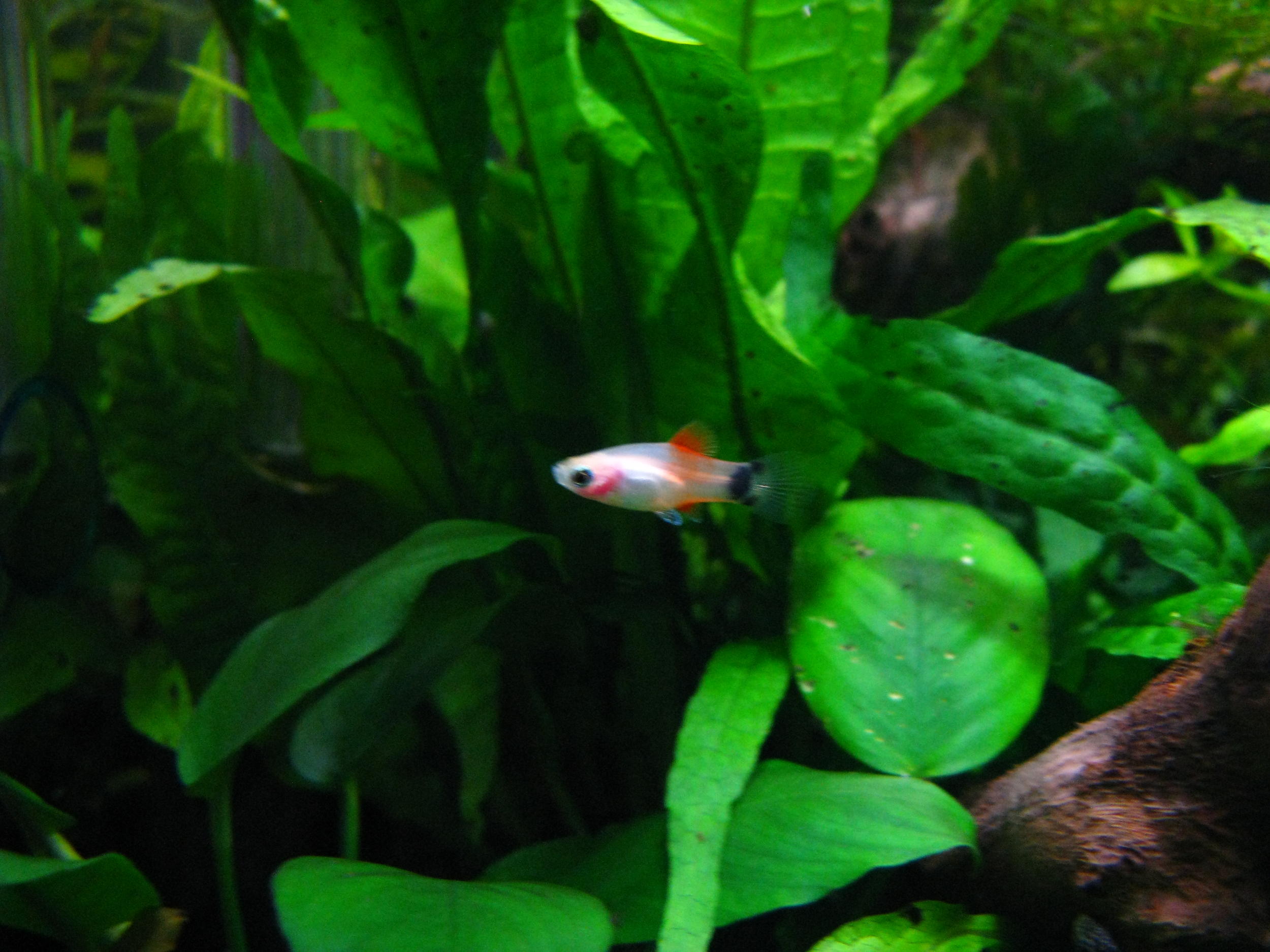 Одна из самок пецилий погибла. Отказалась от еды и умерла от истощения. Причину я так и не понял. Другая самка привела мальков, но я провтыкал и выжил только один. Скрытый текст