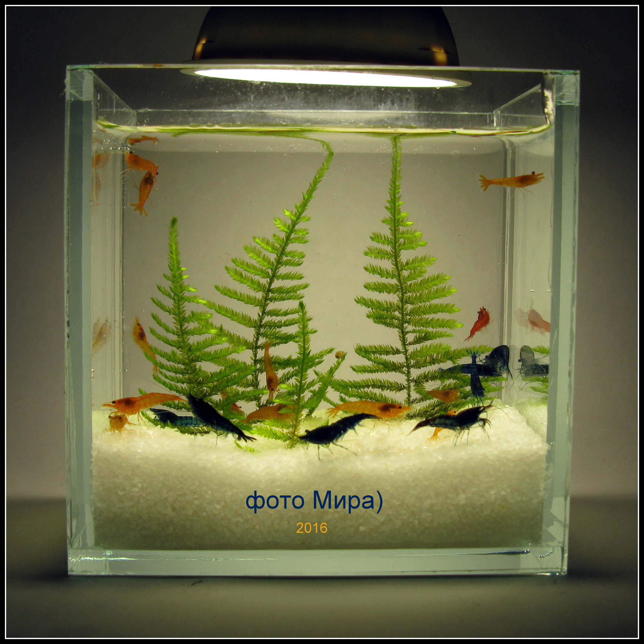 Размер молодых синих и оранжевых креветочек около 1,5 см.