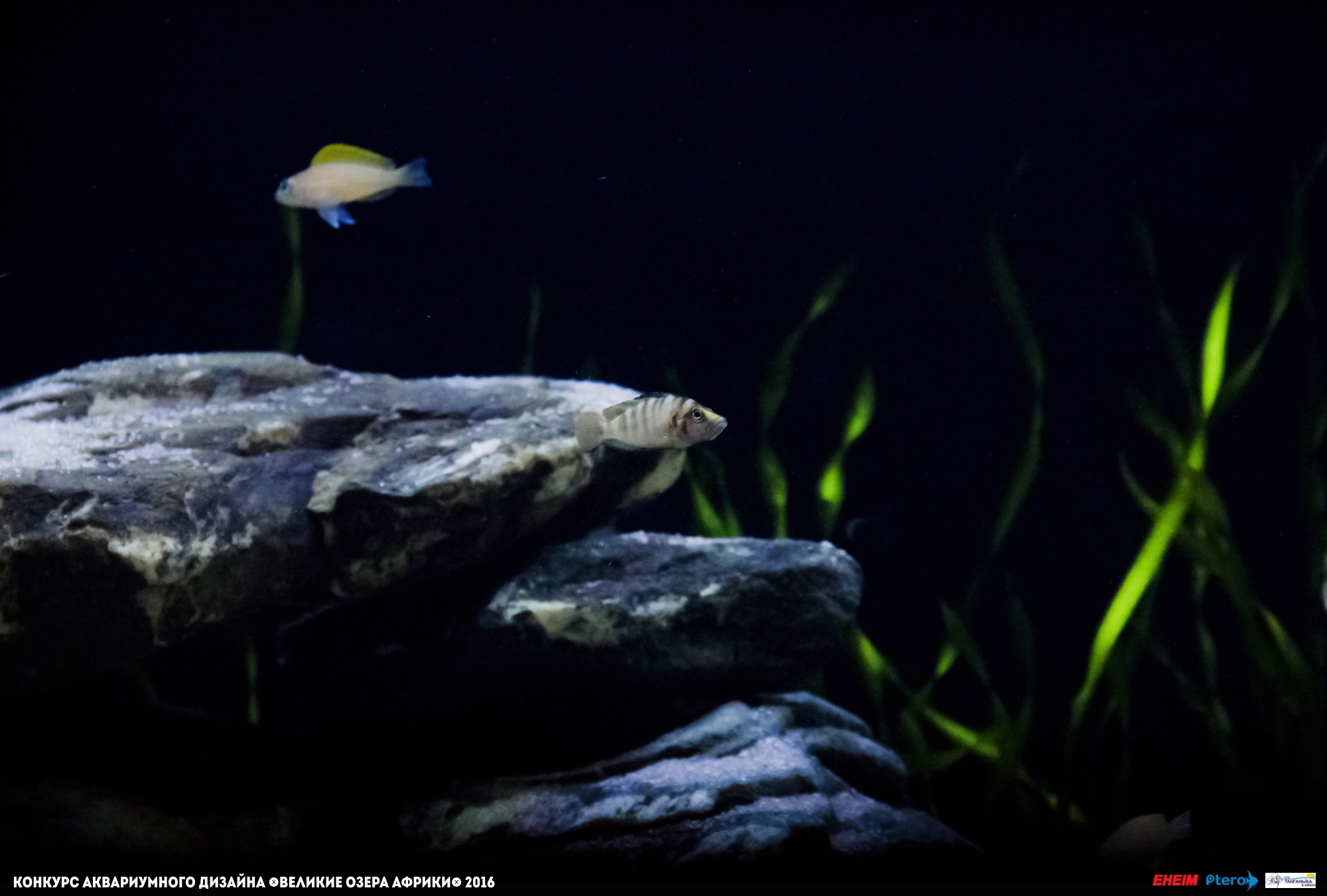 Глядя на этот аквариум я вспомнил документальный фильм от NationalGeographic. В нем была сцена погони выдр за альтолампрологусом. Рыбка в итоге спаслась, спрятавшись в узкой расщелине. Использованные в аквариуме камни отлично подходят для этого рода цихлид. Очень жаль, что на конкурс представлено столь неудачное фото. Итоговый бал мог быть выше.