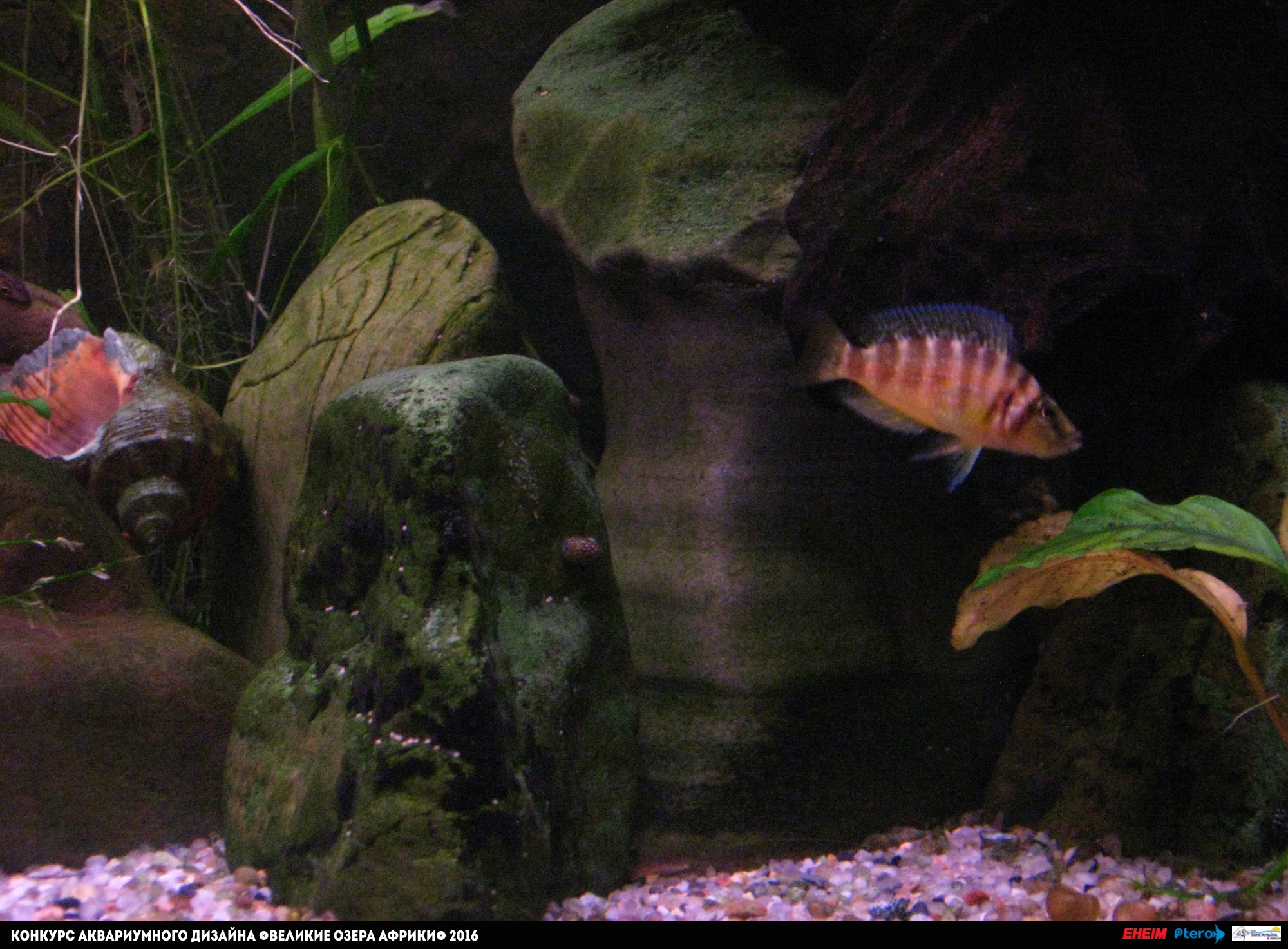 Композиция в аквариуме не так хороша, как в некоторых других аквариумах. Грунт не очень подходит для имитации биотопа озера Танганьика. Тем не менее, аквариум довольно аккуратен и по праву занял высокое место в моем рейтинге.