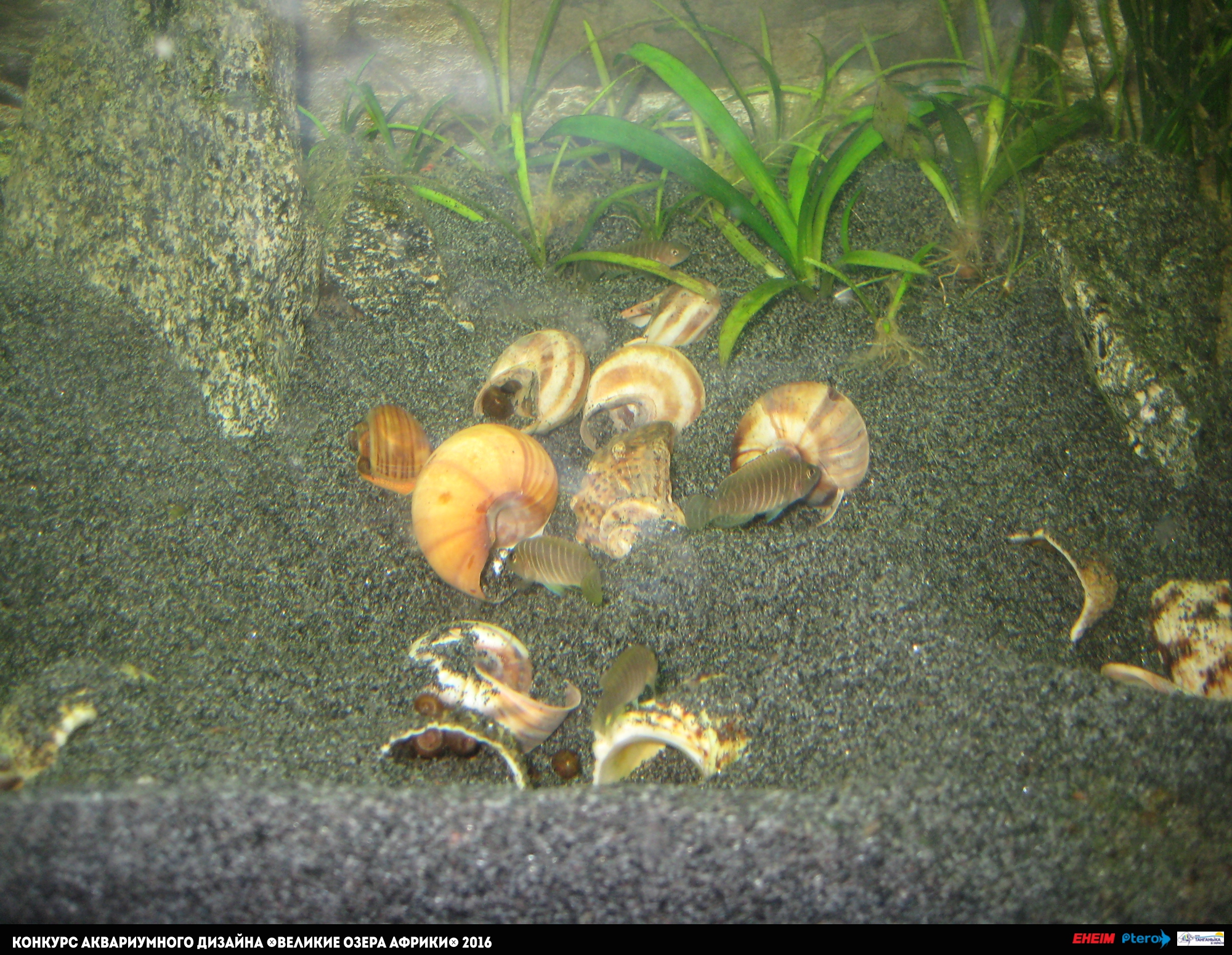 Неплохой аквариум, однако ощущение биотопа совсем отсутствует. Рыбы почему-то находятся в одной точке. Возможно автор решил их покормить. Ракушки не похожи на те, в которые в реальности присутствуют в озере.