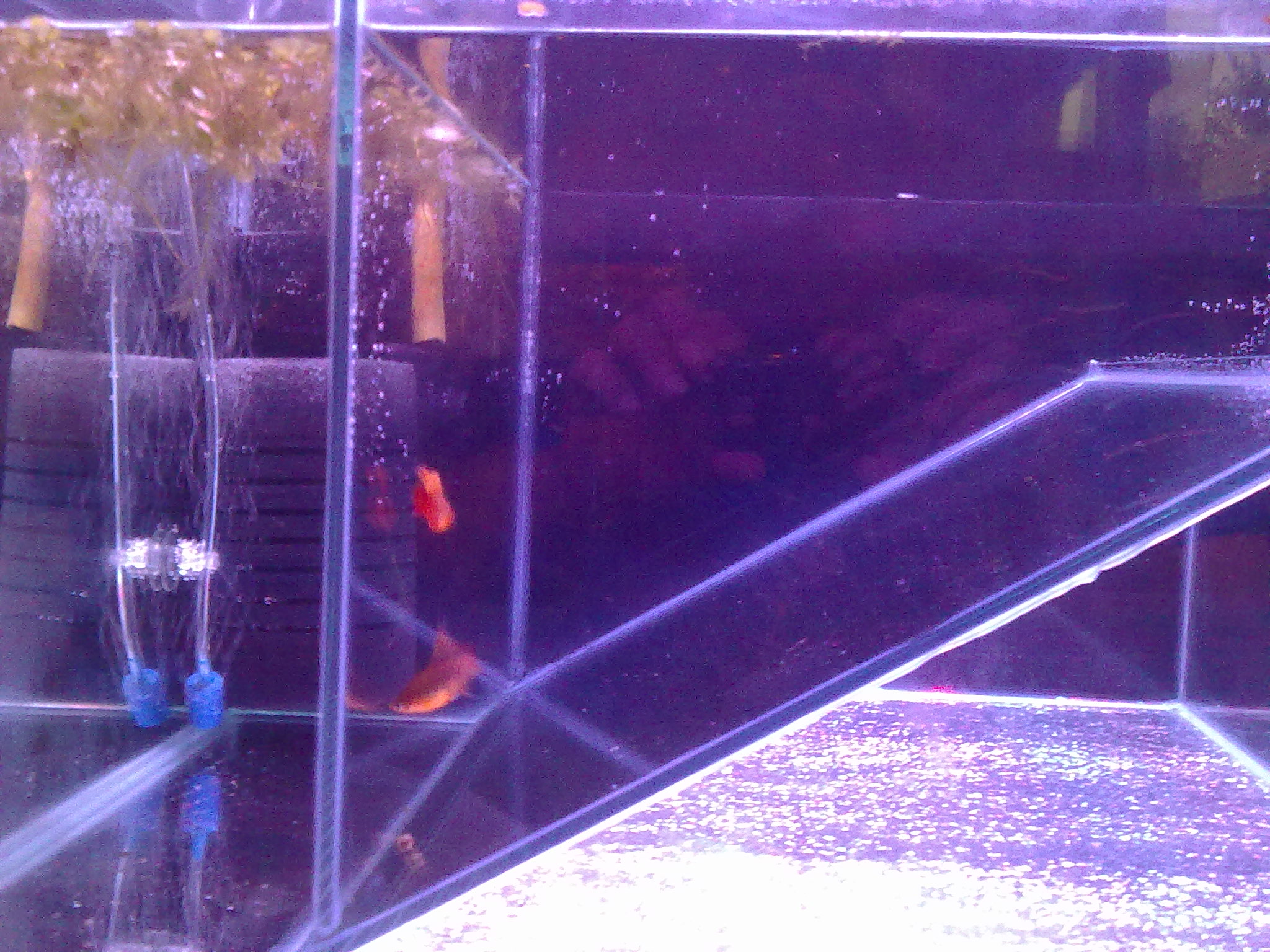 Я не вклеивал наклонное дно, а просто положил на вклеенные опоры и промазал по периметру пластилином и не зря, через месяц понял, что с такими "темпами получения" малька - далеко пойду... Дно снял и получил прекрасные биофильтры http://www.aquaforum.ua/showpost.php...&postcount=362.