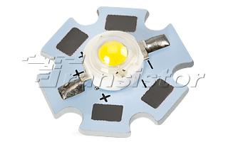 Мощный светодиод на плате типа STAR, d=20 мм, h=8 мм. Чип BRIDGELUX 45 mil серия High BIN, прозрачная линза. Цвет белый (6000-6500 К). Угол 120-140°. Световой поток 150-170 лм при If = 350 мА, P=1 Вт. VF=3,0-3,4 В. Световой поток 260-290 лм при If = 700 мА, P=3 Вт. VF=3,4-3,8 В