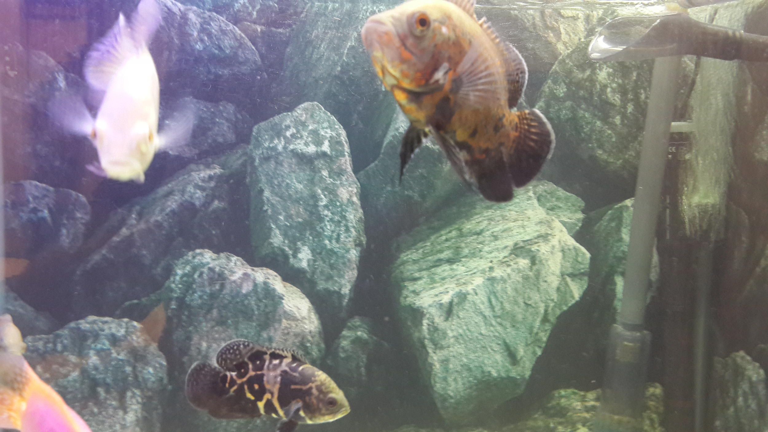 Астронотуси молоді , вік приблизно 3 місяці , розмір десь 12-15 см ,