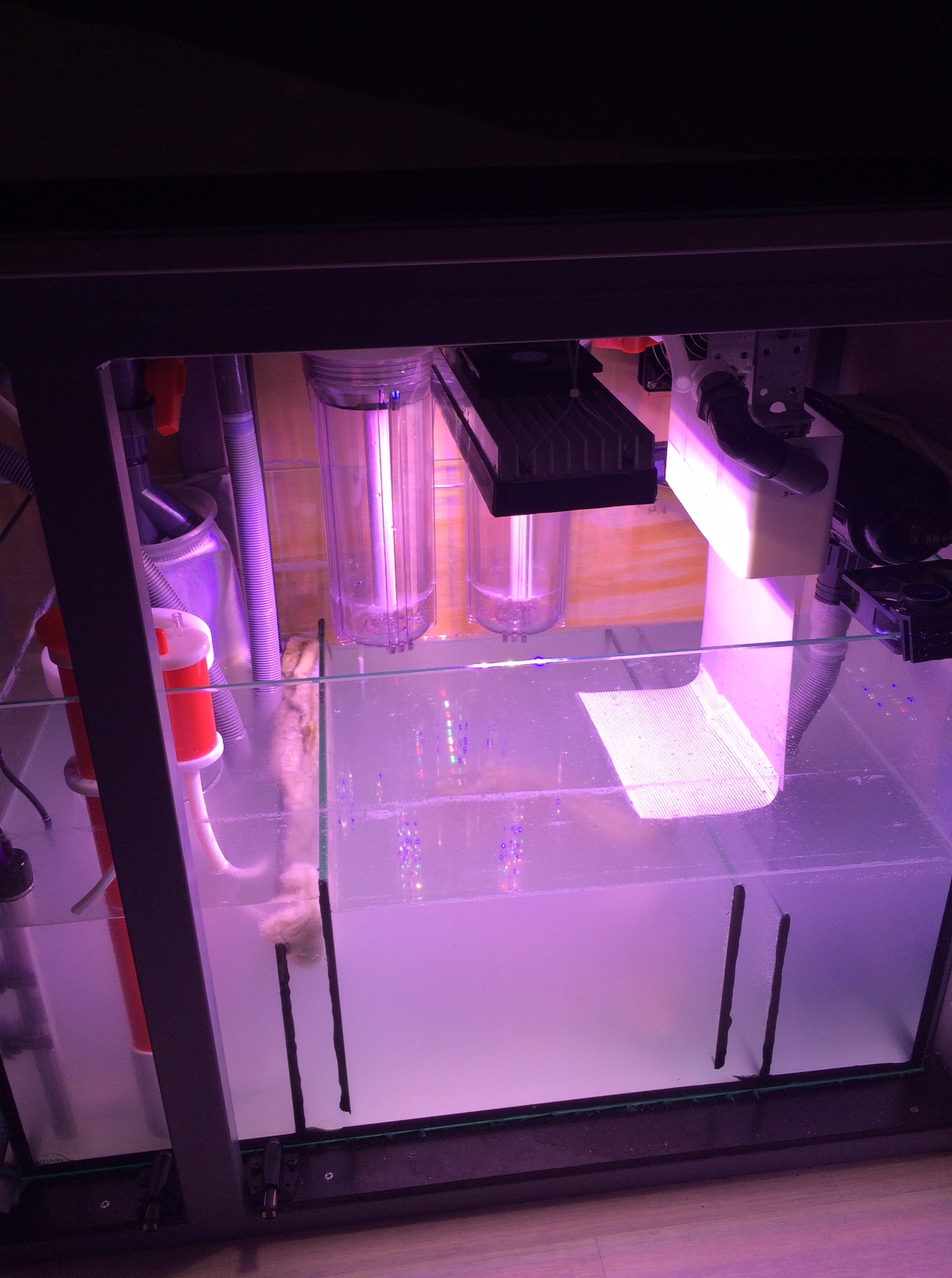 Скраббер легко снимается. Свет для него тоже лед Теплые и Красные, но пока не придумал как закрепить два светильника с обеих сторон сетки.