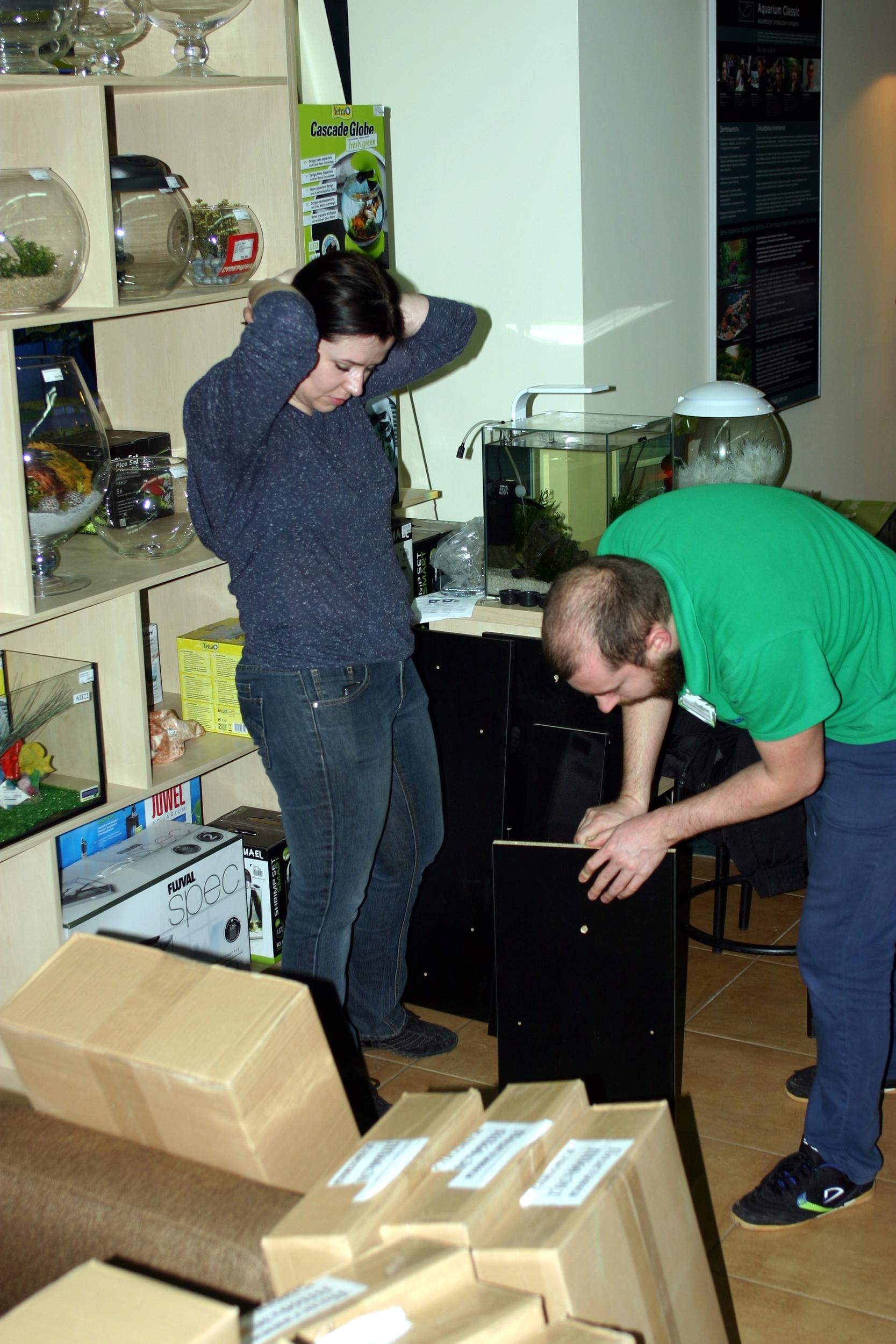 Сегодня поставили аквариумы, залили воду.....