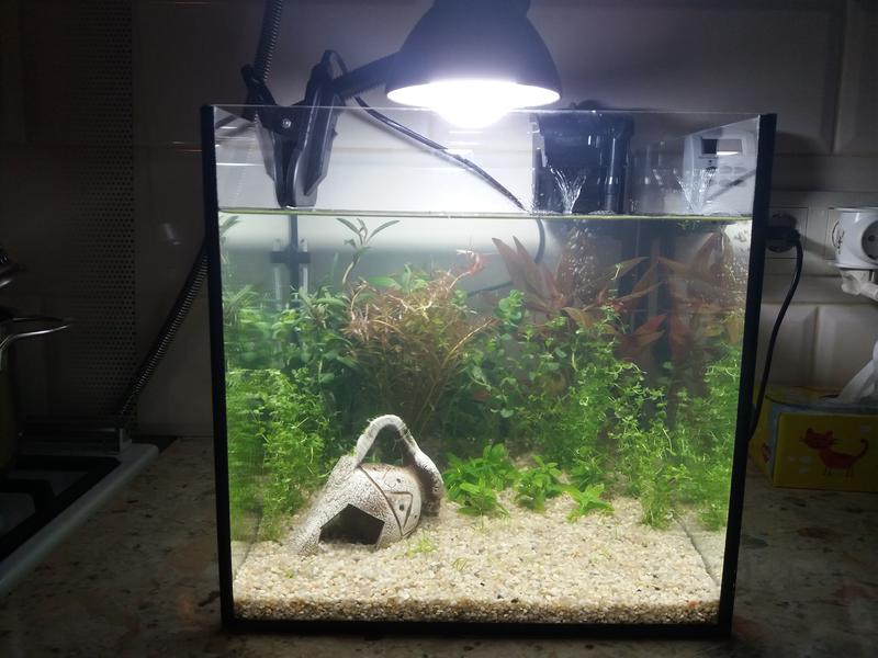 Да, пара. Подумал, что запускать туда в качестве первопроходцев абы какую рыбу как-то негуманно, все же велики шансы, что ее, рыбу эту, кондратий хватить может. А если и не хватит, то куда ее девать потом? С улитками попроще.