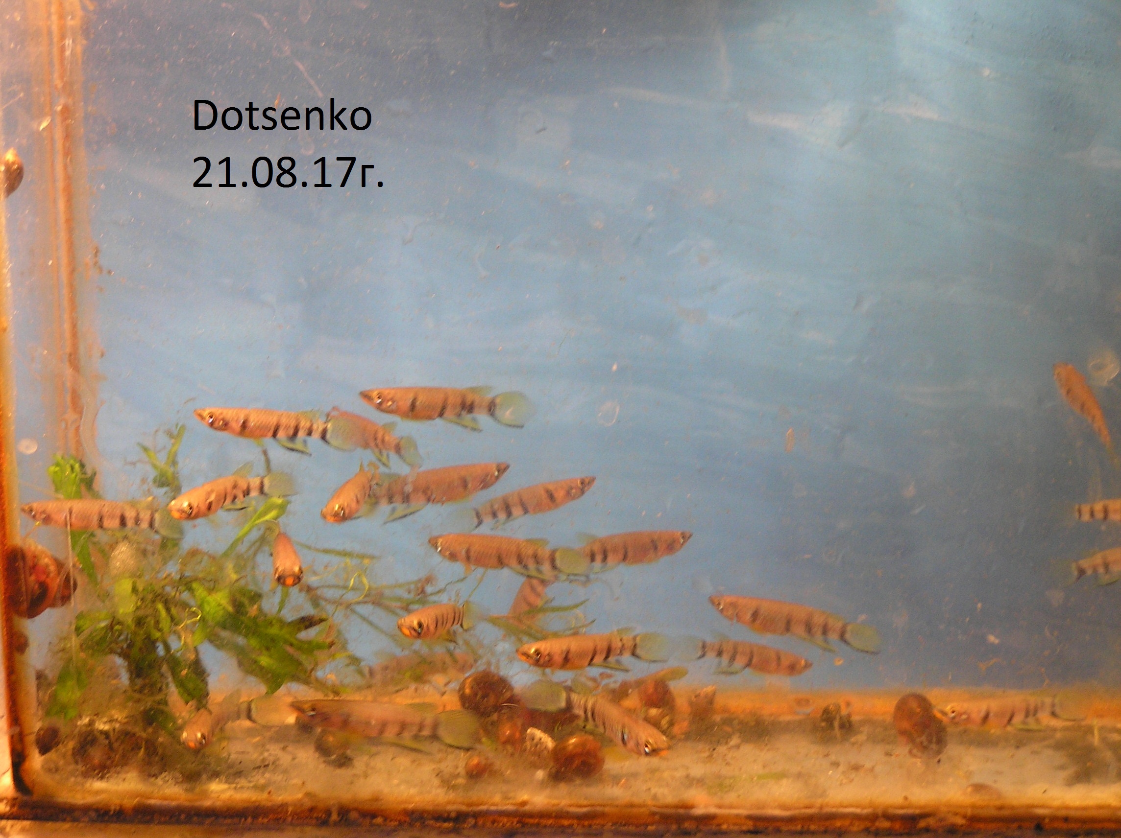 Производители от друга Романа,а он получил их от Романенко Ю.А.(Киев).Кому, как нравится называть.Мне нравится первый вариант,как застал их в 1971 году и немного разводил тогда.Наблюдения за их повадками и привычками удивляют.Всем известна их охота за летающей под стеклом аквы мухой.Все рыбки приходят в неистовство,вся стая.Охота.И не дай бог не закрыть аквариум.Здорово прыгают.Но прыгают только на охоте и при нересте,когда партнер теснит подругу или наоборот.Но,кто не прыгает(не скаче...),тот...