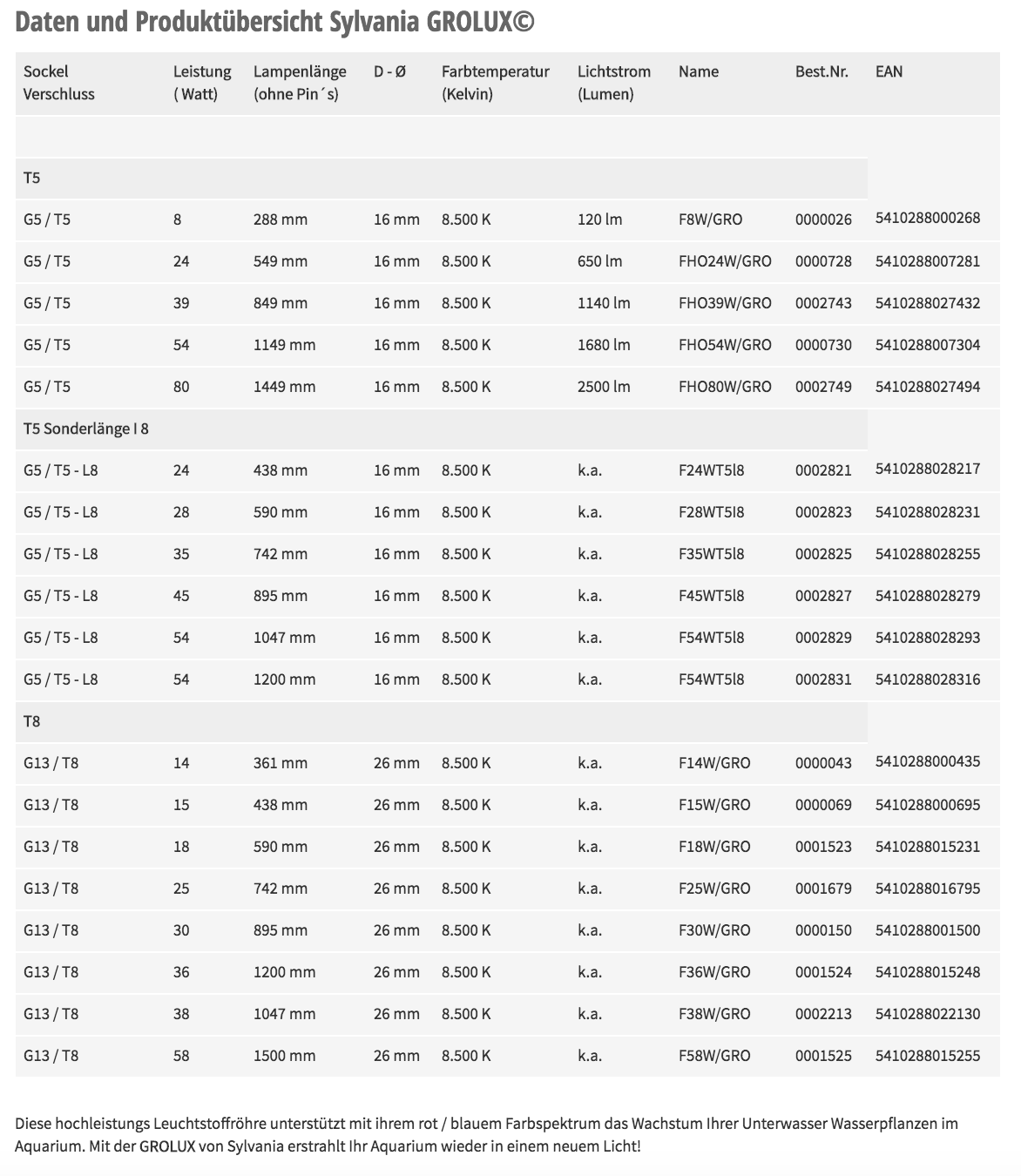 Дополнения, касающиеся линейки Sylvania GROLUX