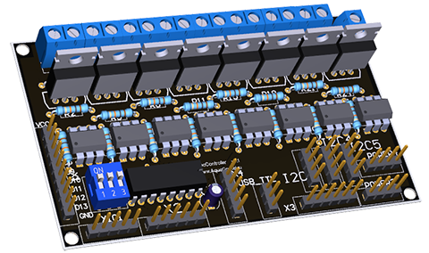 Силового блока:Применяются 8-ми канальные блоки реле (твердотельное), либо собственная силовая плата.