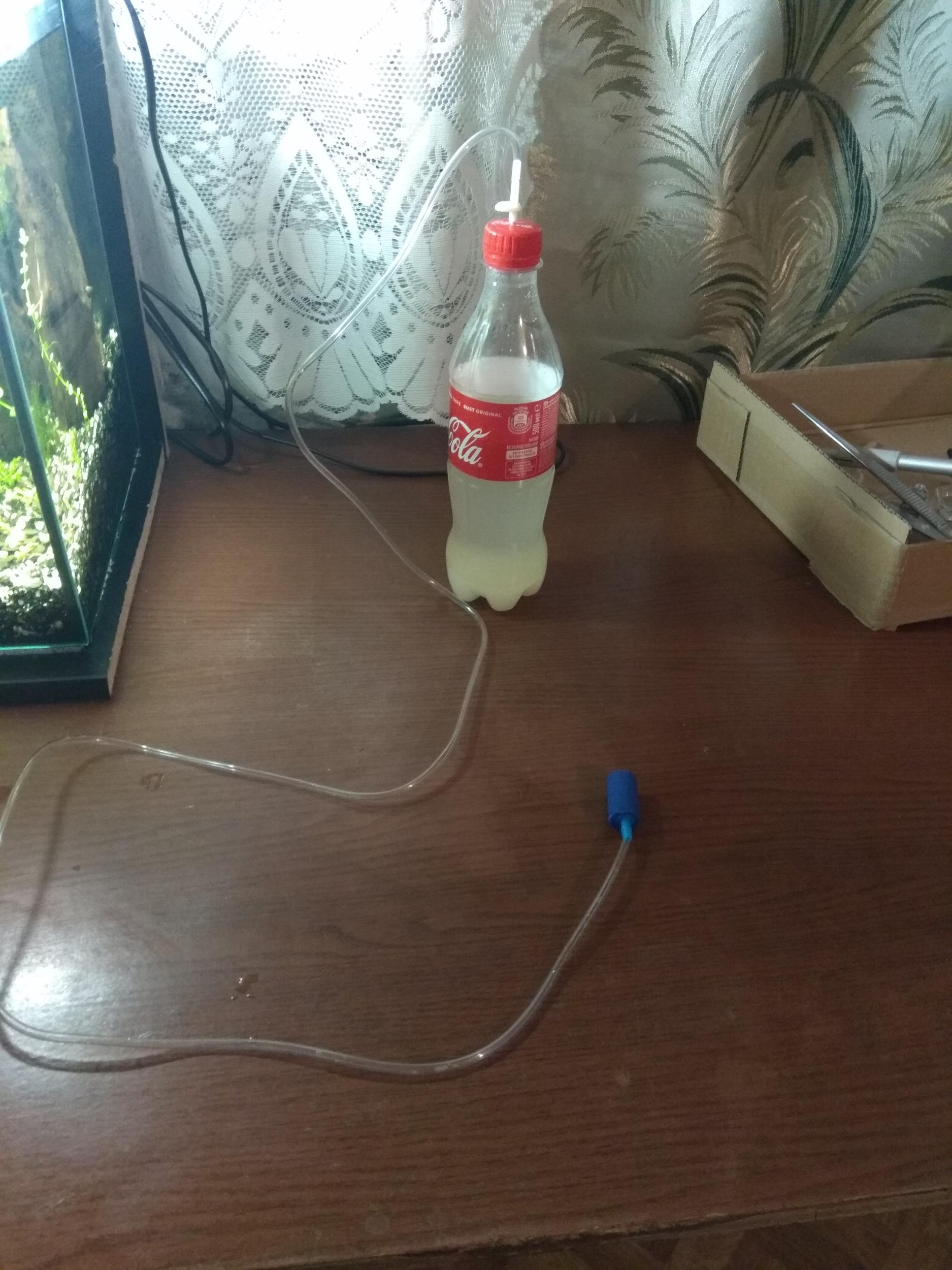 Все исправил, загерметизировал вход трубки в бутылку, утром газ пошёл.