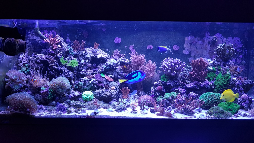Из техники все тот же лед, скиммер, уф18 ватт, грелка, АМ регулируемое течение,пеллет реактор и баллинг..