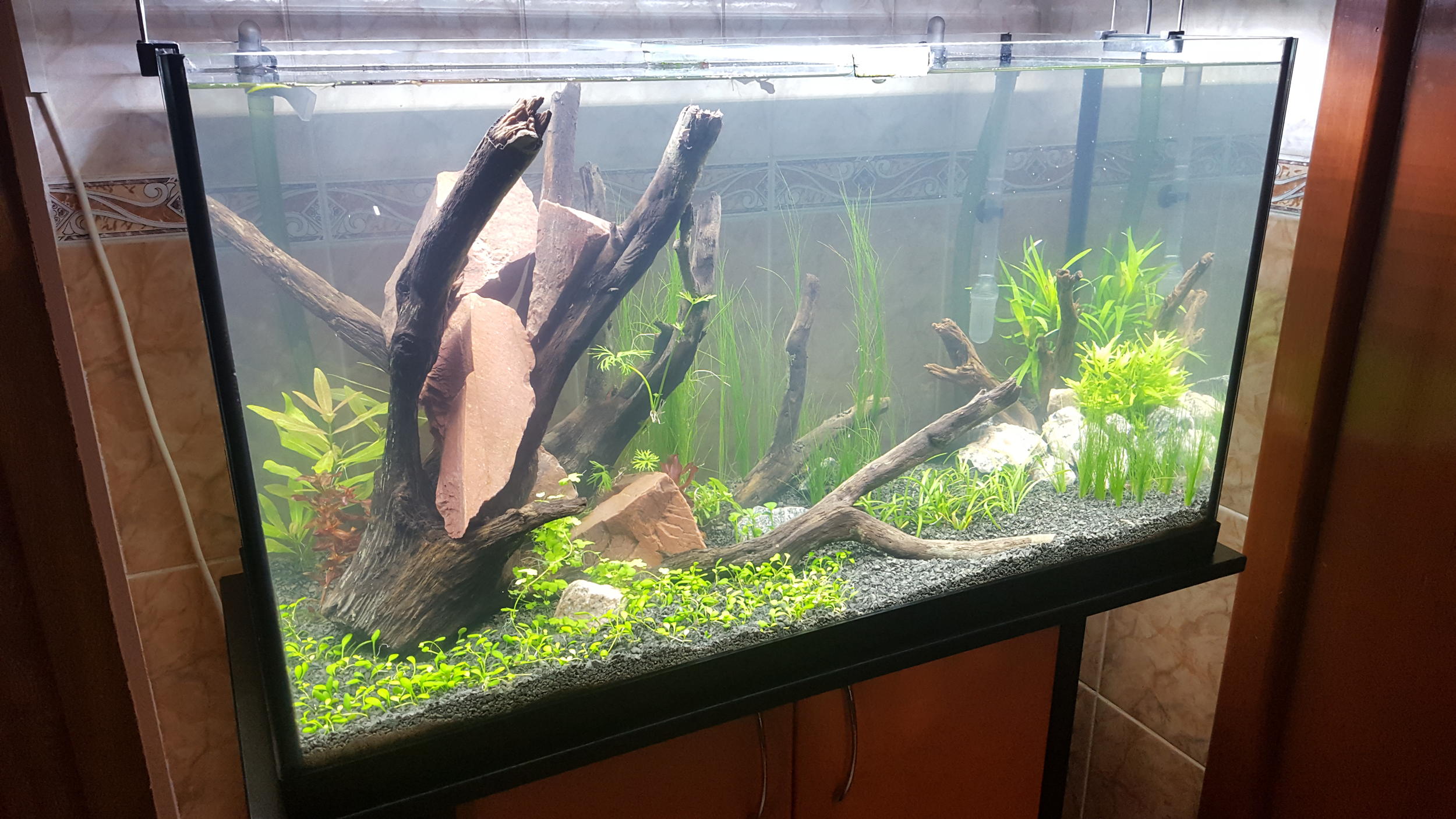 Спасибо))) Да, пока всплывает... Просто при покупке сказали что коряга подготовленная, и тонет 100%. И я этот момент не проверил и упустил. Так бы на присоски посадил) так что пришлось камнями придавить