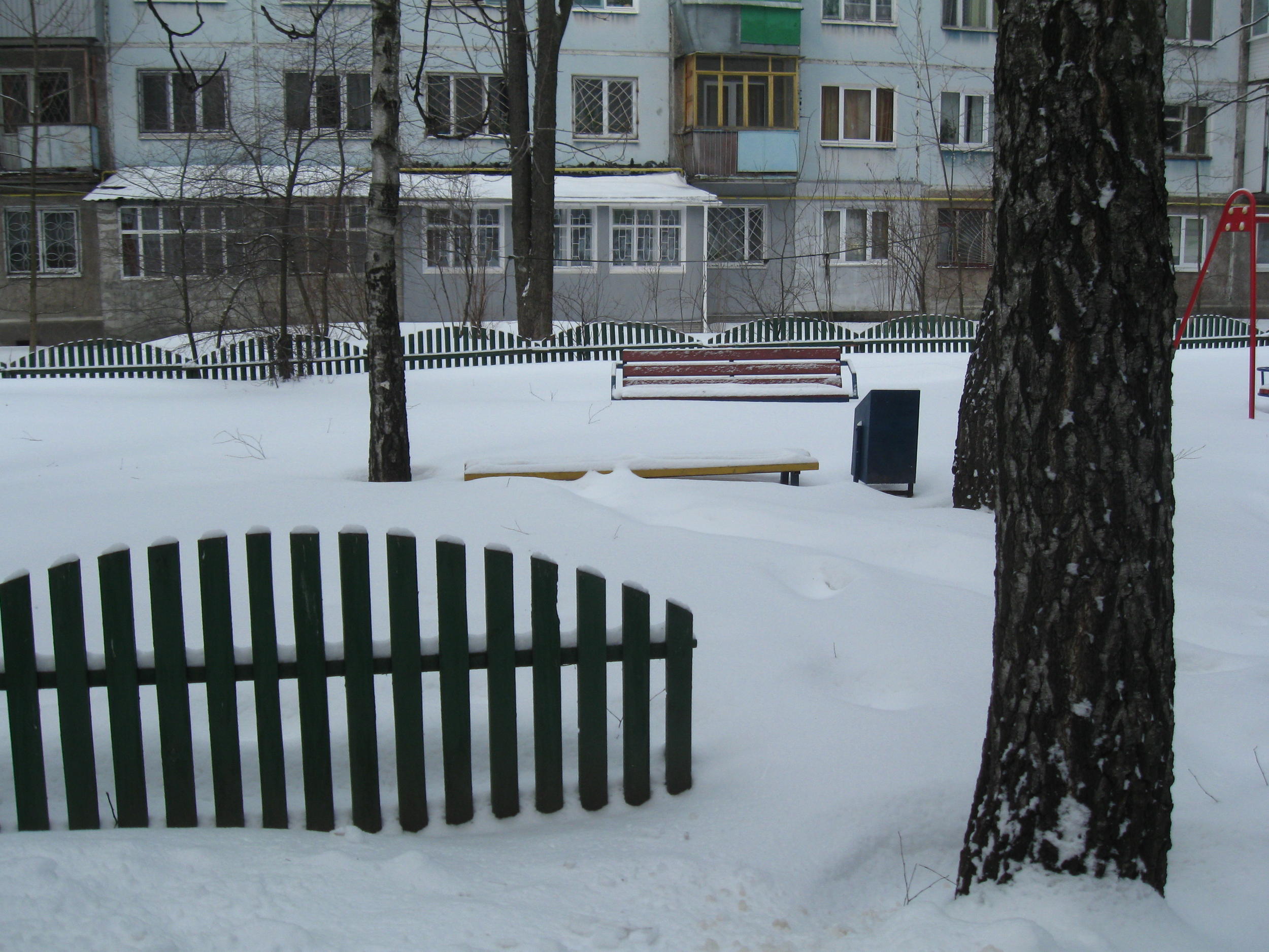 ...Между домами в основном-тропки.А какие снежные одеяла нависли над балконами!Вот грохнет.