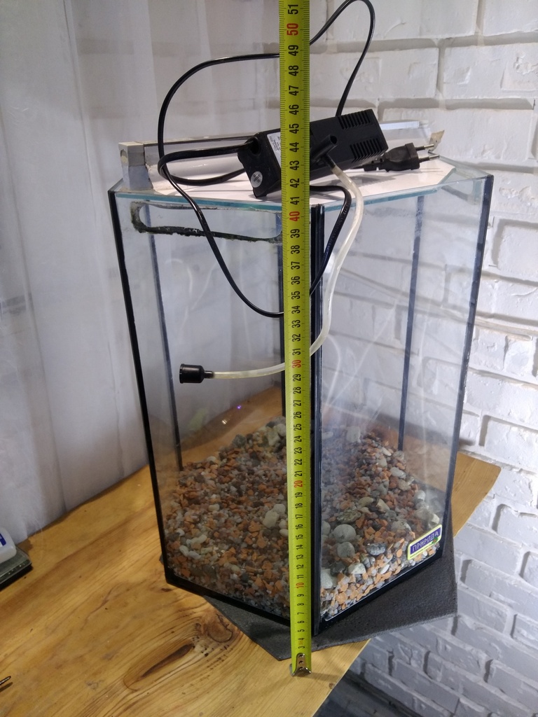 продам аквариум Природа шестиугольный на 32л. к нему идет грунт, маленький фильтр и пару пачек мороженного корма. отлично подойдет для разведения креветок. - 500 грн