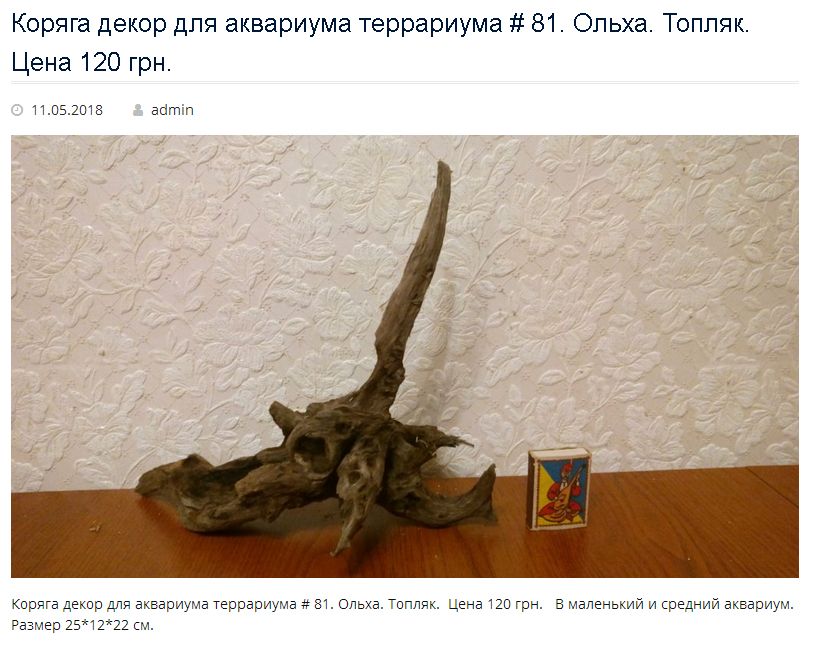 ВНИМАНИЕ! Остерегайтесь недобросовестных продавцов-аматоров. Коряга при продаже должна быть ИСКЛЮЧИТЕЛЬНО: сухой, обработана механическим способом (вручную), вырезана гниль, без коры, без грязи, прописано из какого дерева. Как правило продаются коряги, которые просто обработали щеткой и сразу проварили несколько минут, или обдатые кипятком, или просто промыли струей воды. Будьте внимательными при выборе коряги! ОСТЕРЕГАЙТЕСЬ ЧЕРНЫХ, МОКРЫХ, ГРЯЗНЫХ И НЕОБРАБОТАННЫХ ГНИЛЫХ ТОПЛЯКОВ!!! Берегите свои нервы и здоровье Ваших подопечных.