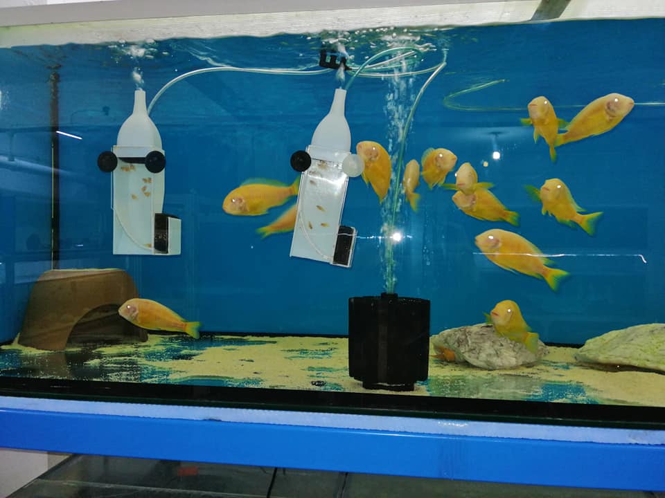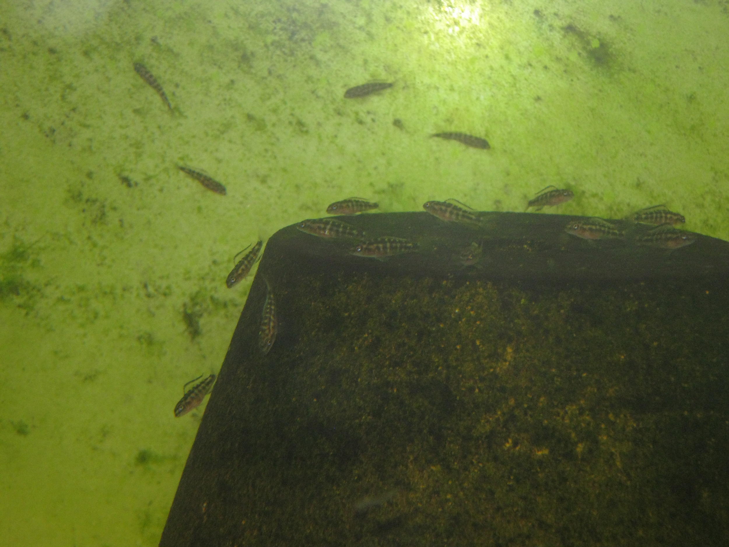 "чудо" моє живе)), щоправда майже не росте хоча корм одержує в звичайному для всіх об'ємі. Раніше думав може як виросте підберу пару. а зараз плаває просто тому що нікому не заважає в виростному акві з порівнюваним по розмірах мальком