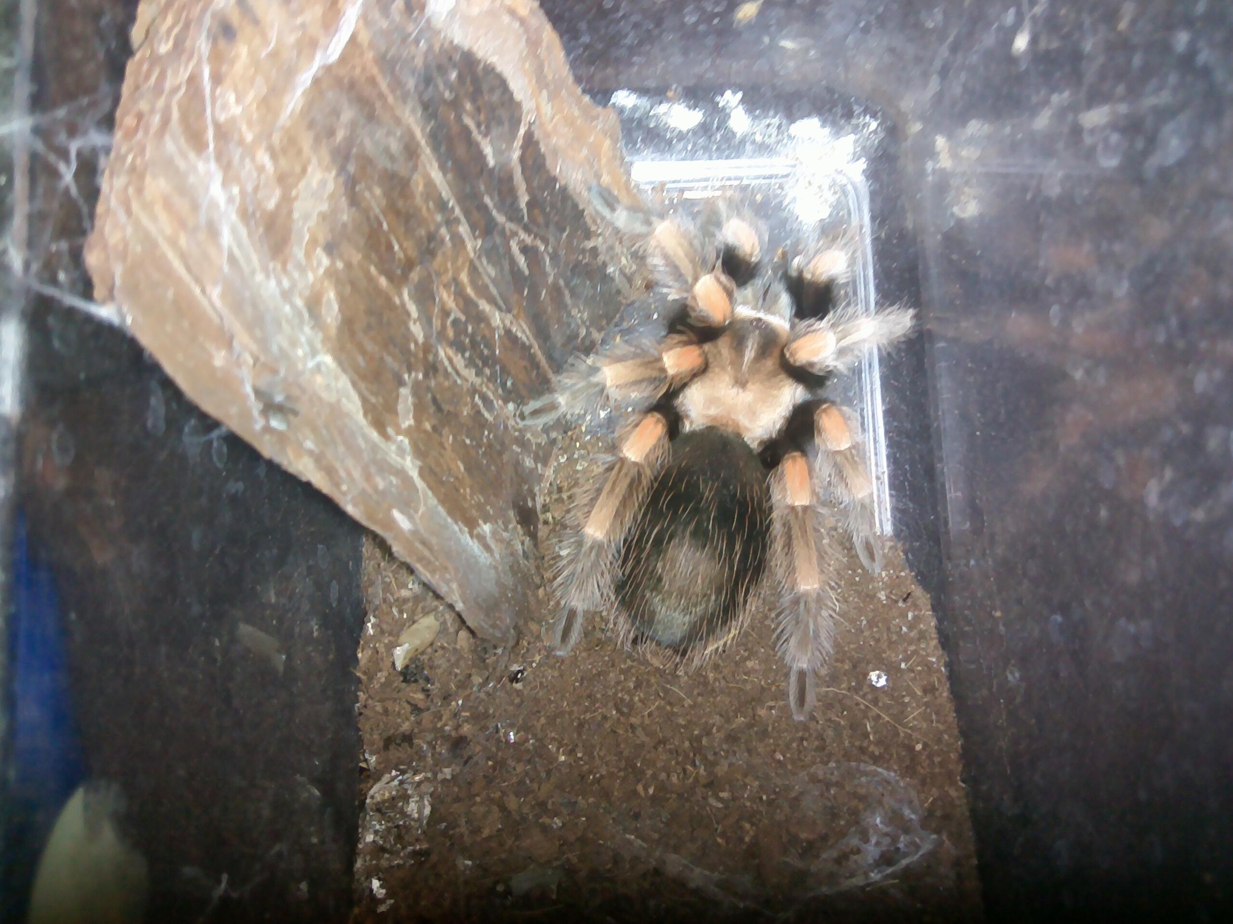 В продаже данные гибриды преимущественно встречаются под видом Brachypelma boehmei (возможна так же продажа под видом Brachypelma smithi). У меня сидят две таких особи (первые два фото, особи 8 и 9 линьки).