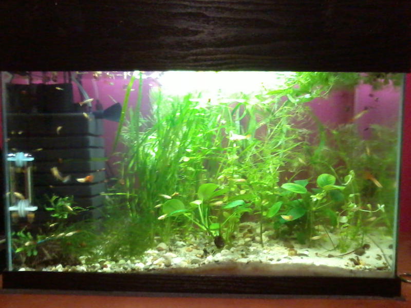 Похоже, что из рыбок вместо гуппи лучше всего держать одного анцитруса или пару анцитрусов - самца и самочку. Они и банку чистить будут, и голодными не останутся. Для них желательно иметь крупные светлые обкатанные морские камни и мангровую коряжку. В большем объеме можно . наверное, держать сиамских водорослеедов. А чтобы валиснерия не разросталась на переднем плане около переднего стекла на грунт можно положить кусок стекла со шлифоваными краями. Видно его не будет, живность не порежется, а на переднем плане будет "полянка", свободная от растительности. Так можно избежать вмешательства в виде выпалывания лишних растений. Думаю водяные ослики будут очень кстати, всвязи с разложением отмирающих листьев валиснерии.