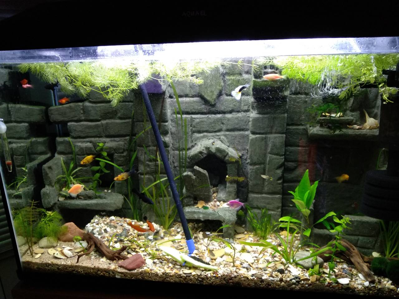 8. Перечень рыб (видовой и количественный состав)- моллинезии 7, гуппи 3 + мальки, пецилии 2, данио 3, тернеция 3, меченосец 2, сомы анциструсы 2, креиветки 6 взрослых точно видел+ мальки