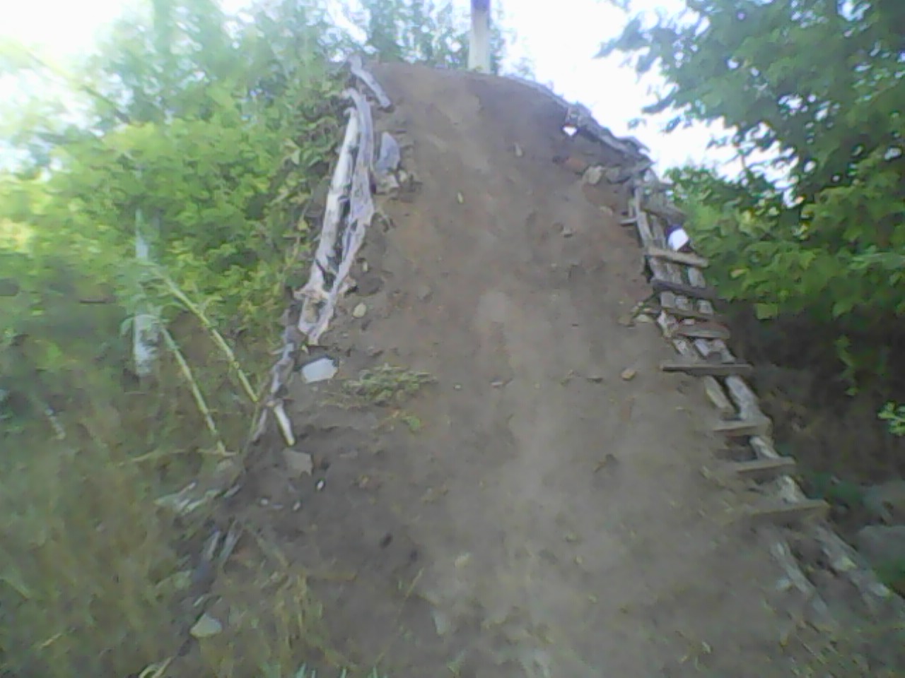 .да,простите,фото не качественные.Было утро и я не особо как-то собразил выбрать ракурс с учетом света.Или мне что-то не давало это сделать...Тогда словами.Это такое сооружение,оплетенное и вплетенное в деревяный из подручных материалов каркас или скелет .Насыпана с одной стороны земля.Все это очень отдалено от жилья и не думаю,что сделали дети.Это довольно грамотно сделанное сооружение.Предположить,что это просто горка для зимы не могу,т.к. никогда зимой не видел возле неё следов людей.Какое-то сооружение для мотоциклистов?Такая крутая горка?Так как ТОГДА въехать на верх и там развернуться?Склоняюсь,что это для гномов-мотоциклистов какой-то аттракцион или спортивное сооружение.Но не уверен,почему с вами и советуюсь.