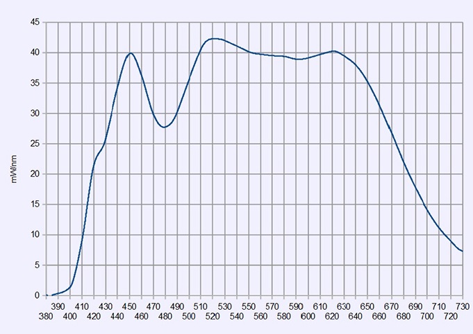 В реальности график излучения светодиода с ССТ 5000К выглядит даже значительно лучше, чем в даташите