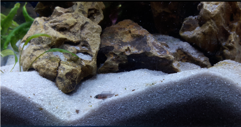 Наконец разродились мои самки кобу и галлирея, маля уже активно лопает циклопа. И вот сегодня как раз решила устроить большую уборку в аквариуме ну и как-то совершенно случайно и очень легко словились мальки, да еще и 3, а не 2 как я думала. Решила рискнуть и пересадить маля к петуху: Людовик парень достаточно спокойный, любит втюхнуться между стеклом и фильтром и кайфовать от вибрации. Так может продолжаться часами. Тем более недавно Людовику выстроила из драконьего камня целый особняк с криптокориной и еще какой-то растючкой. Так что кто не рискует, тот не пьет шампанского,а ведь все-таки скоро новый год и я не хочу остаться без своего бокальчика шипучки. В любом случае, как бы не советовали не держать вместе петухов с цихлидами,на семейном совете,состоящим из меня, моего маленького сына, двух котов и жирной собаки, большинство голосов поддержало попытку сохранить маля, пусть даже и по соседству с Людовиком-петухом. Маля очень быстро адаптировалось, Людовик с интересом наблюдает за внезапно образовавшимися яслями в его особнячке,все счастливы,особенно я -мать решила в дочки-матери поиграть и вырастить малышей ( прям живое тамагочи ей богу  )