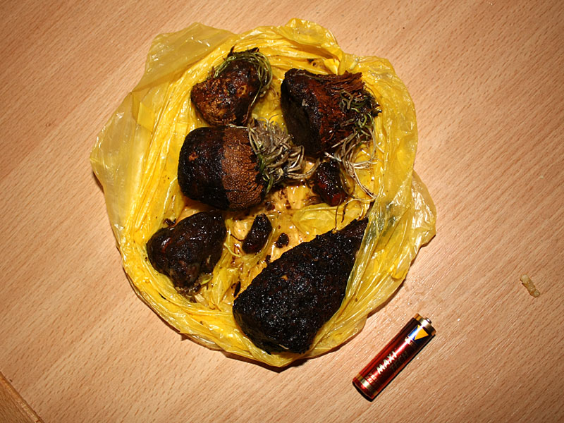 семь клубней разного размера - один почти с куриное яйцо, еще три - с каштан, и остальные поменьше..