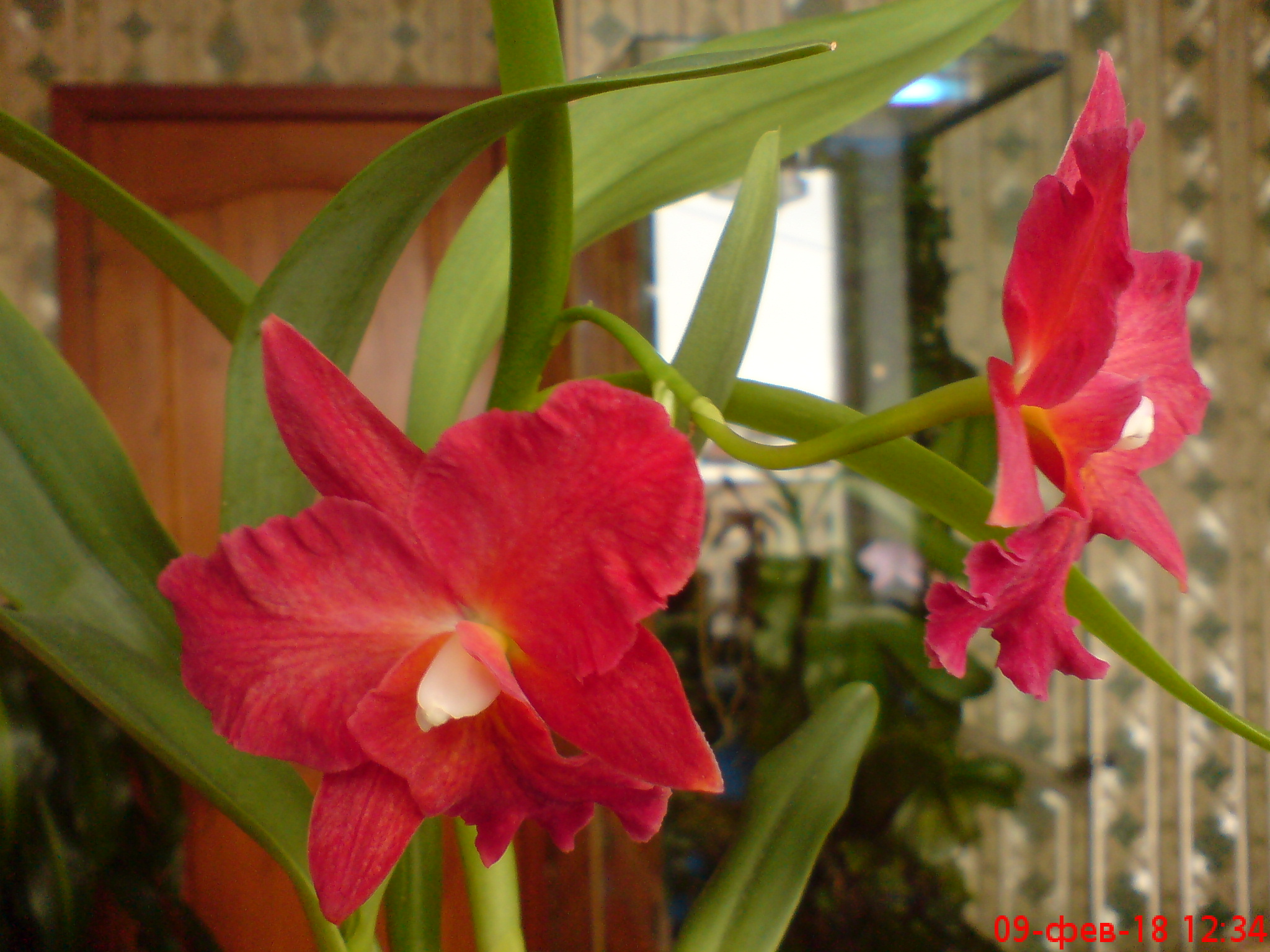 Мои красные каттлеи зашли на следующий круг цветения (напомню предыдущее цветение ноябрь-декабрь). Первая вот зацвела. Вторая растит бутоны скоро тоже покажу. ЗИМА. Окно северо-восток солнце никогда не попадает в окно с октября по апрель. БЕЗ ПОДСВЕЧИВАНИЯ. Цветов конечно меньше. на второй вроде будет цветов столько же как и было но еще не очень понятно.