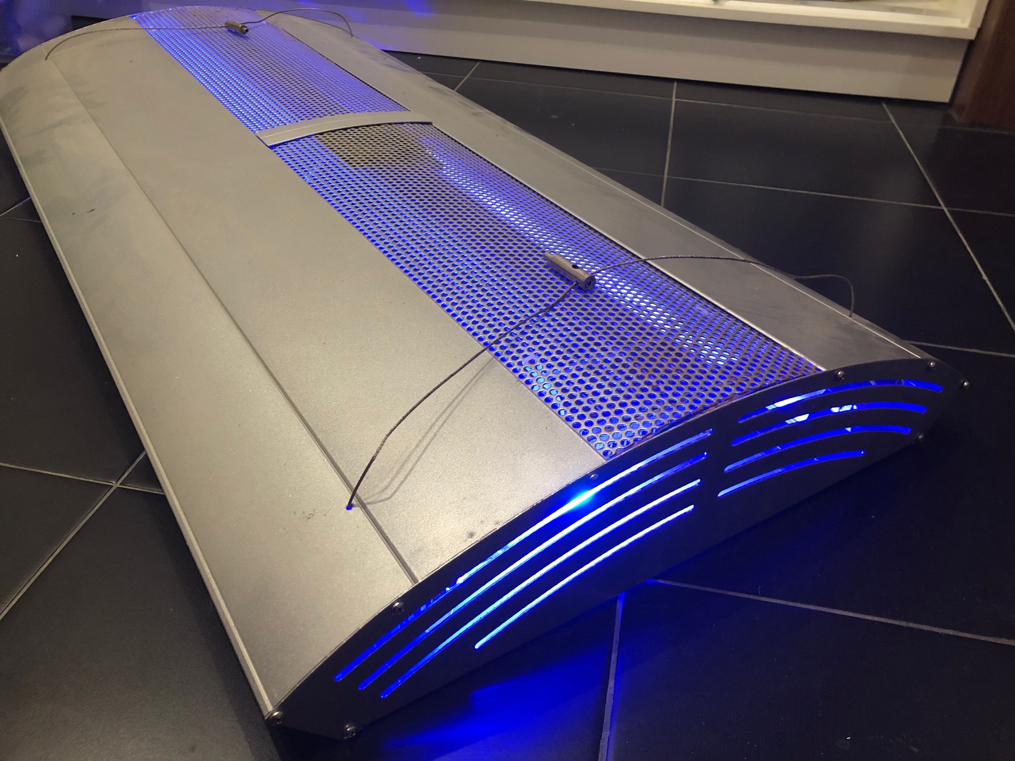 Общая мощность 320Вт для аквариума от 200 до 500л. Длина 90см, ширина 45 см. Цена 350$ c контроллером и БП.