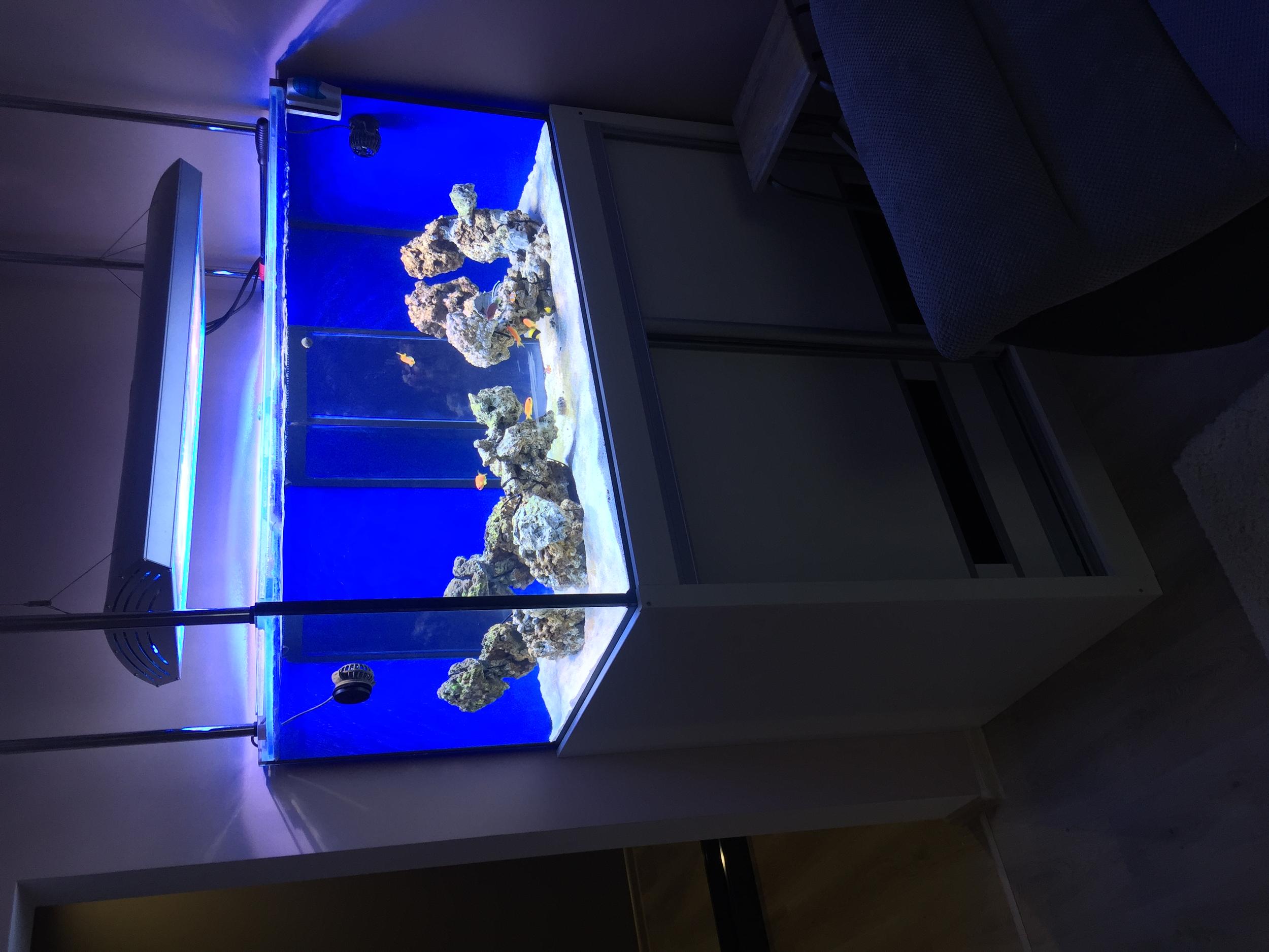 Спасибо за интерес, все хорошо, была вспышка дино месяца 3 назад, вылечил Aqua connect Dino, сейчас восновном Спс, использую цеолит фильтр и Кр, уголь. Фото позже выложу. За это время потерял каталафилию и несколько Спс, рыба вся жива с самого начала. Зонтики переместил в самп, а то Хетодон выжрал всю айптазию и начал пощипывать их.