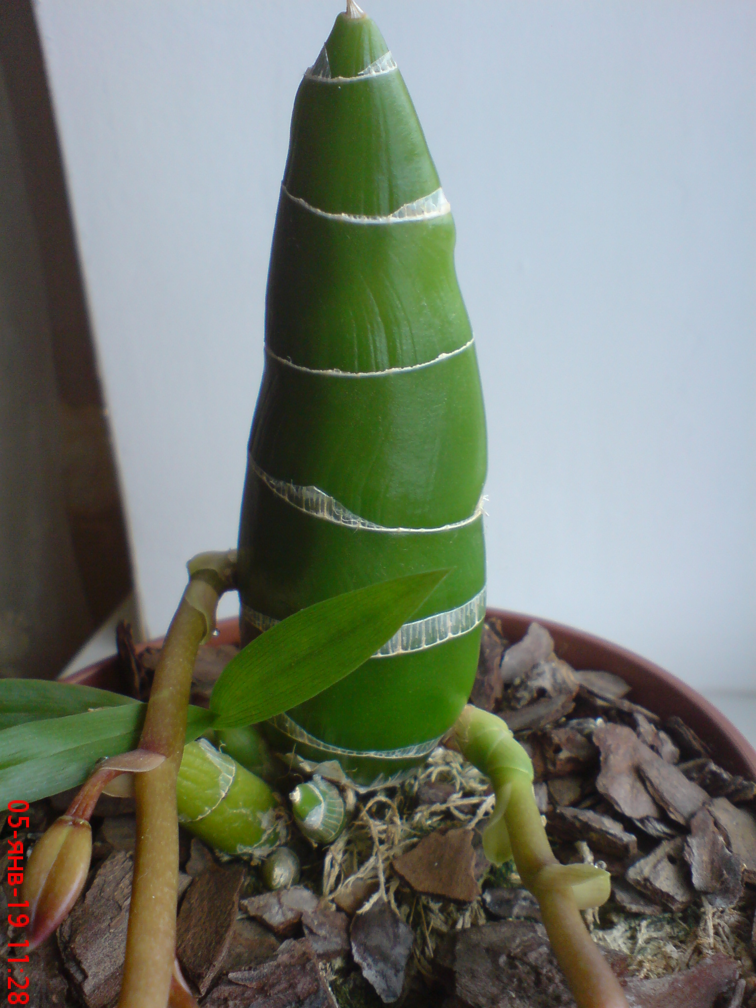 Phalaenopsis Mituo King (RK1) вот такая корневая за год при правильной посадке (в мох сфагнум или смесь мха резаного и коры) и поливе, посадка в больший горшок. у меня нет ни одной детки или подростка посаженного в чистую кору то просто сверху тонкой корой прикрыто что б не росли водоросли на мхе