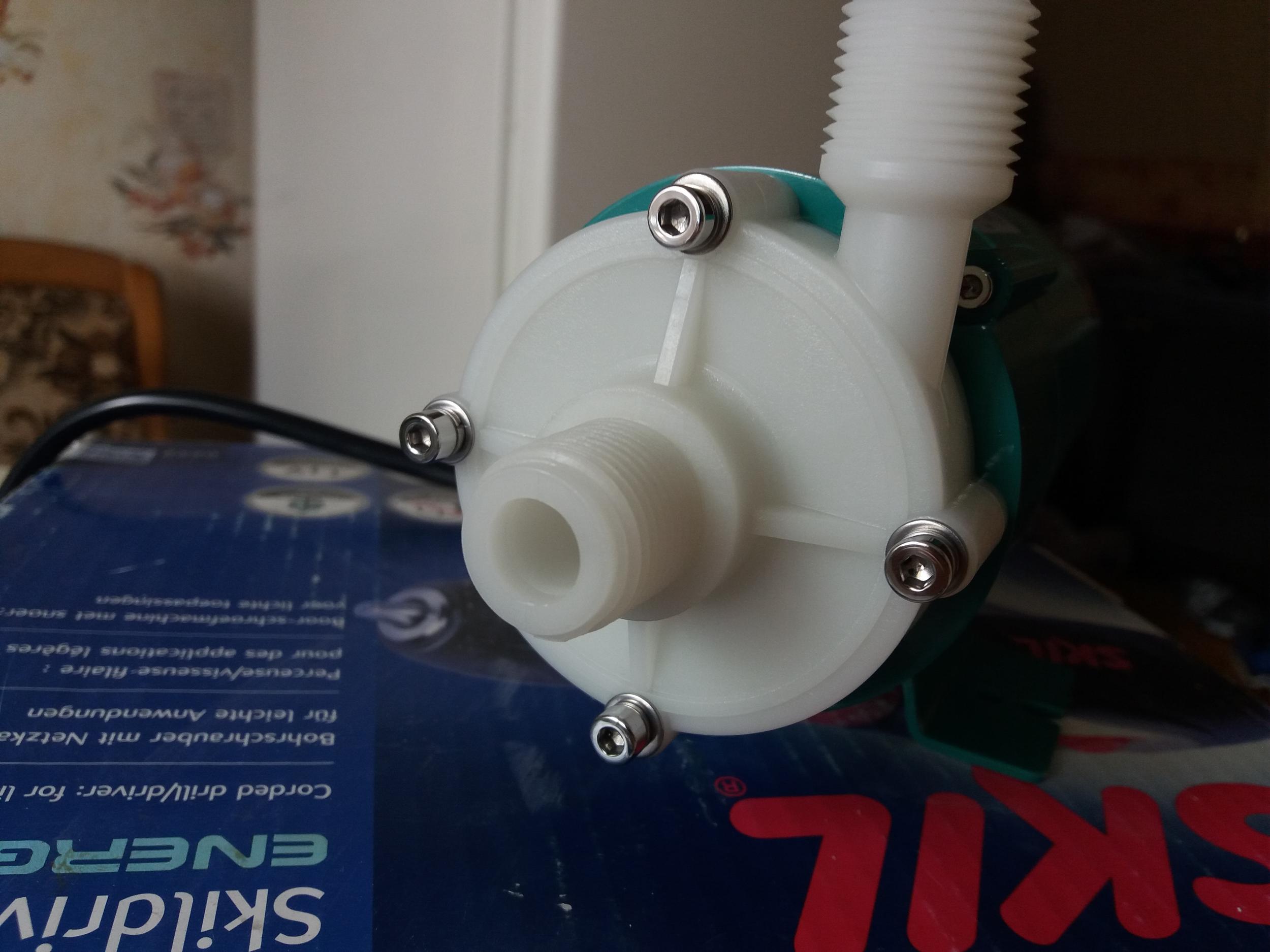 Помпу заказал на ебей ,цена была хорошая, даже слишком ждал подвох...Помпы выпускаются для химической,фармацевтической и космической прмышоенности,на западе их активно освоили в системах кондиционирования, очистке воды фотопечати...очень надежные "улитка"полностью герметична и независима.Система напоминает аквариумные помпы существенное отличие в том что даже если ротор крыльчатки заклинет то эл.двигатель iwaki продолжет вращяться без последствий т.к. он не зависим от ротора кыльчатки пасивное охлаждение продолжет охлаждать ротор и статор двигателя.Если же заклинет аквариумная помпа то статор начнет греться пока я полагаю не выйдет из строя или не причинет вред обитателям небольших аквариумов резким подъемом температуры.Вращение передается на ротор посредством магнитного поля постоянного магнита.Ось ротора керамическая полностью исключен контакт металла с жидкостью.Перекачивать можно от молока до концентрированной кислоты.Работают такие насосы в постоянном режиме годами.Читал у одного аквариумиста такая б/у помпа работала на внешнике более 7лет пока не стерлась ось!