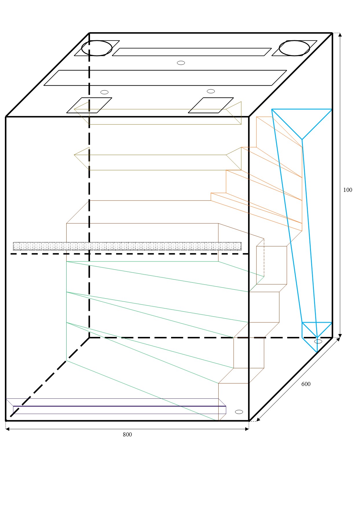 Размер емкости – 800*600*1000 мм (ДШВ), воды планирую заливать до 450 мм. Двери двухстворчатые распашные 300*500 мм.