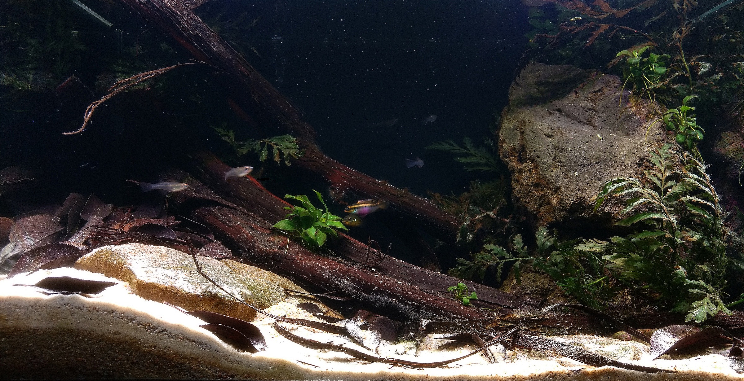 Мои теперь живут в аквариуме с дискусами, прекрасно себя там чувствуют, видать вода им по душе!