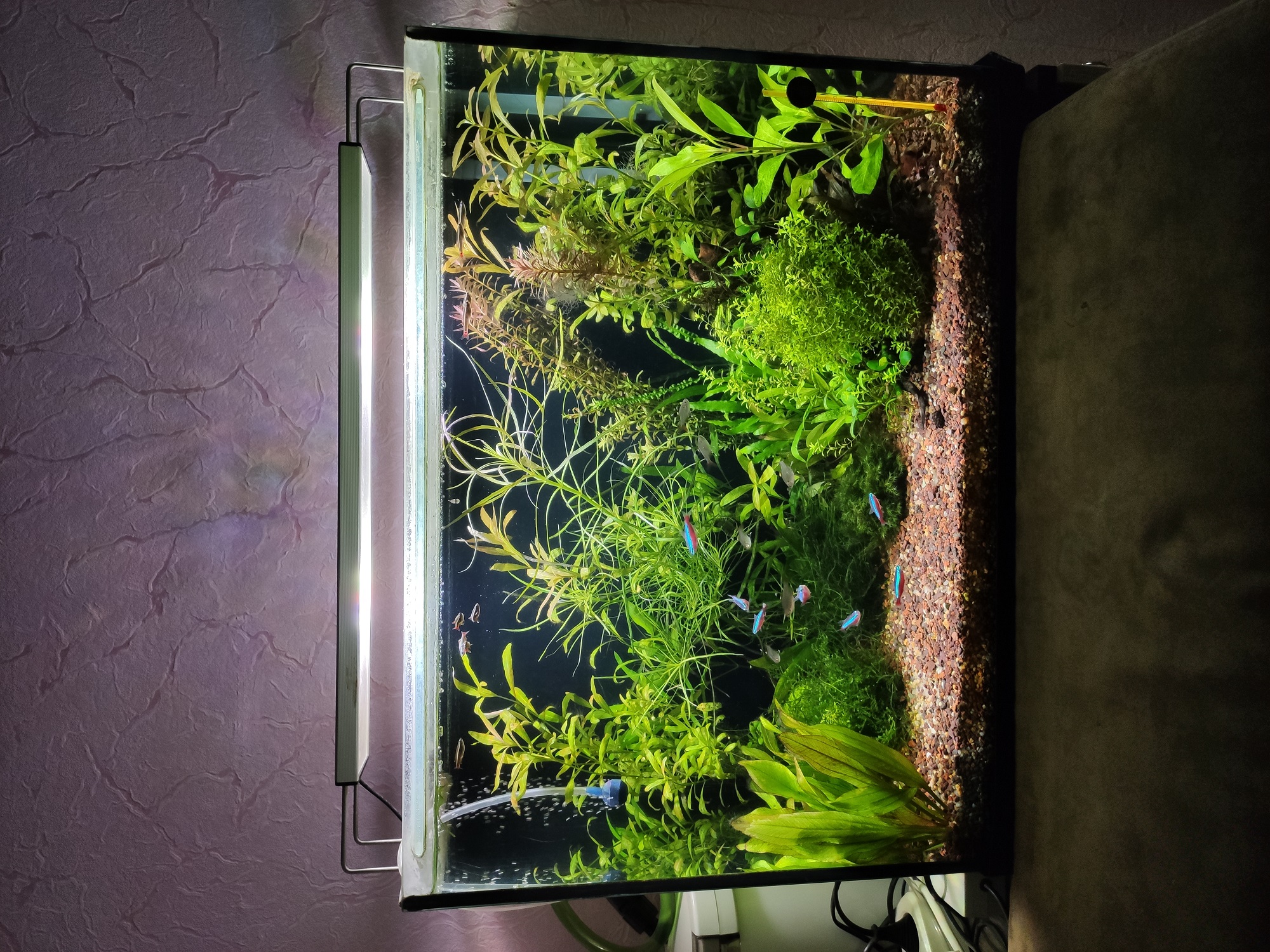 Продам банку 80л(60*30*45)-травник без СО2.По аквариуму-грунт янтарный кварц окатаный 2-4мм,коряга,две трубки для сосов,вабикуса,кокос ,из растений-несколько видов мхов,буцефаландра,лимонник,эхинодорус и еще разные.Из рыб-стайка кардиналов,красных неонов,пристелл,коридорасов Панда,анцитрусов вуаль LDA16 и креветки Blue Dream.Из оборудования-внешний фильтр новый еще на гарантии SunSun 603b,компрессор,грелка Sera 50w,LED светильник Rival MAX Spectral 50,два Очистителя грунта Hagen Fluval Edge Gravel Cleaner,сачки,удо,корма ну и по мелочам...За все прошу-2000