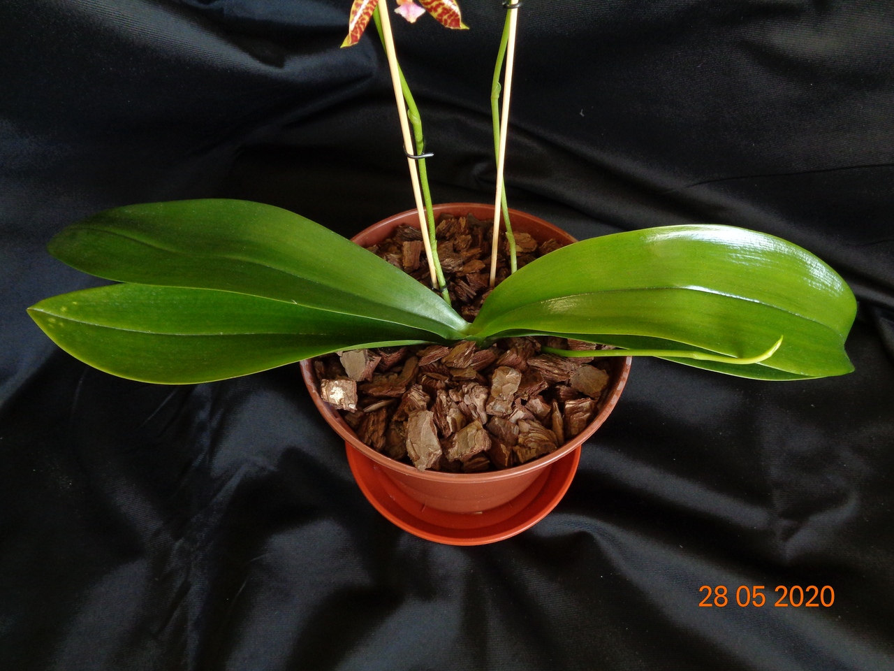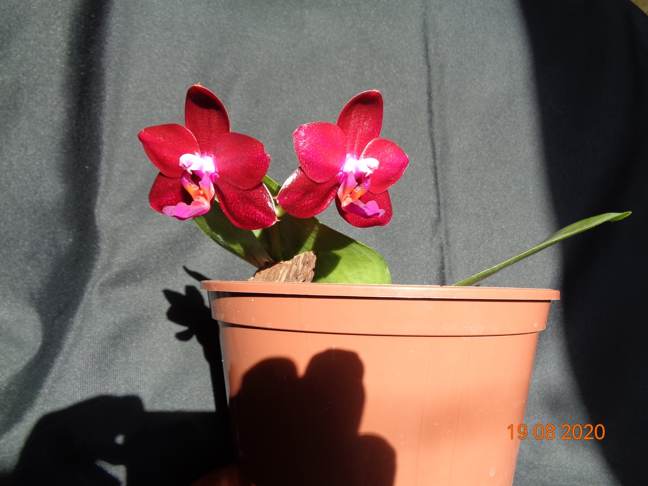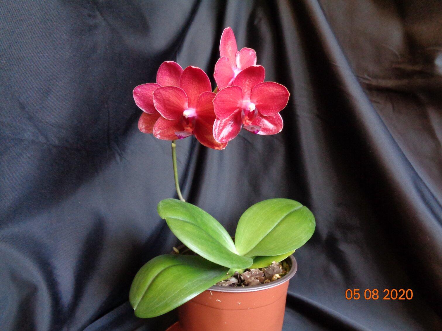 Первое цветение моего подростка Phal. Allura Ruby Diamond купленного в прошлом году в горшке 1,7. Сейчас посажен в горшок на 1,5 литра.