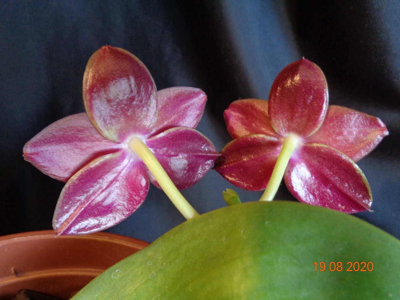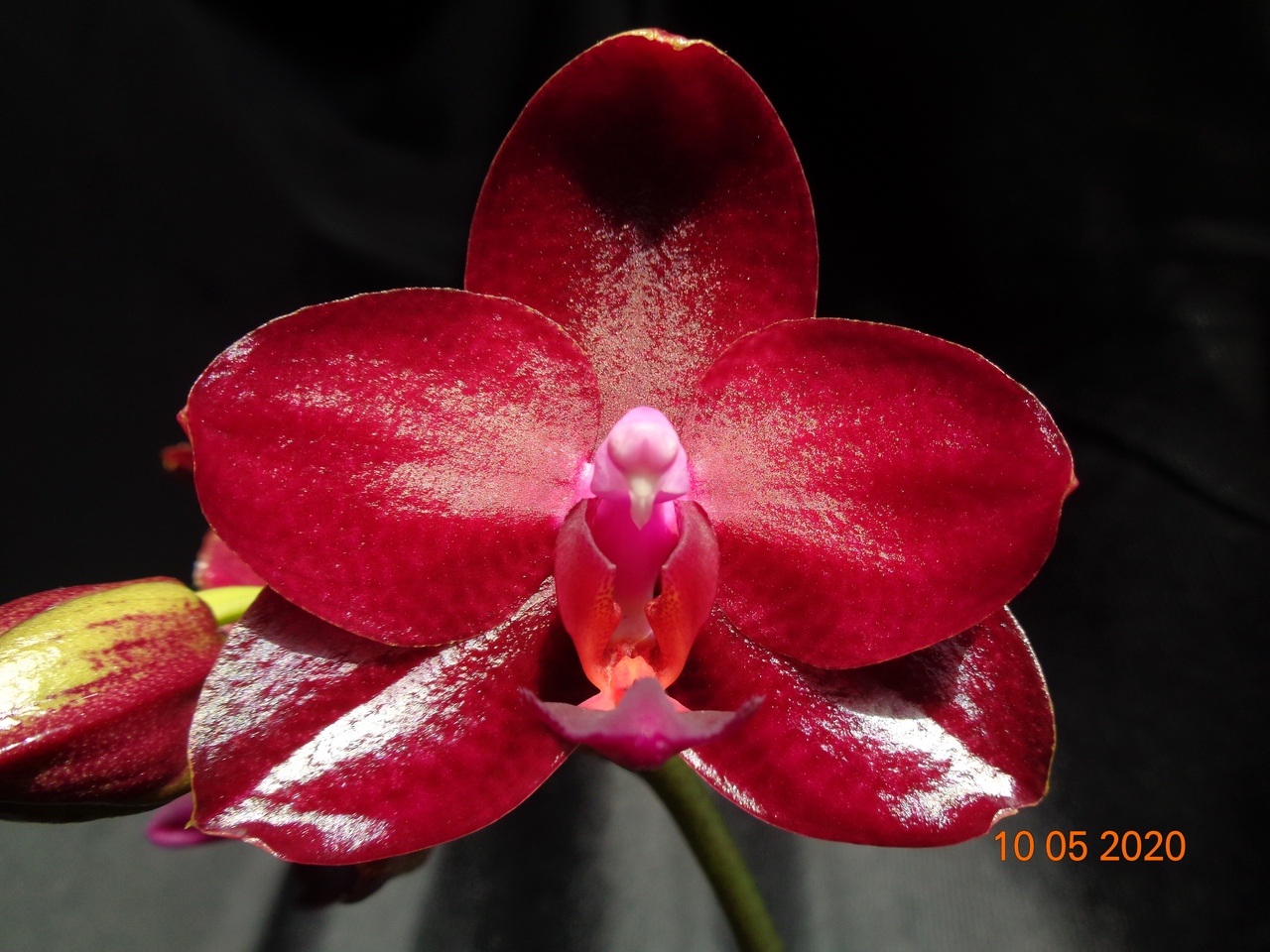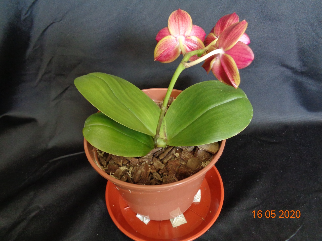 Первое цветение моего подростка Phal. Allura Ruby Diamond купленного в прошлом году в горшке 1,7. Сейчас посажен в горшок на 1,5 литра.