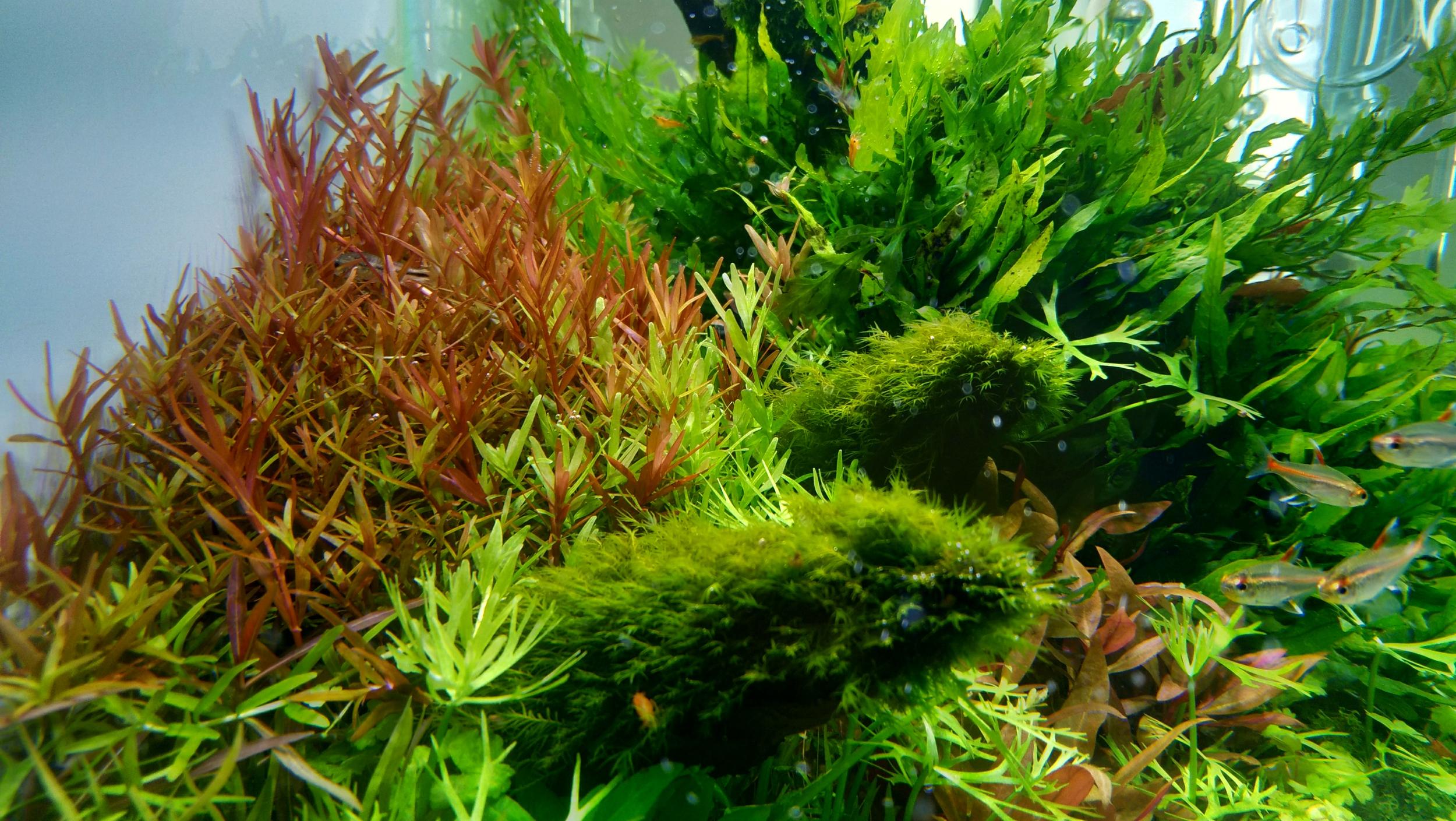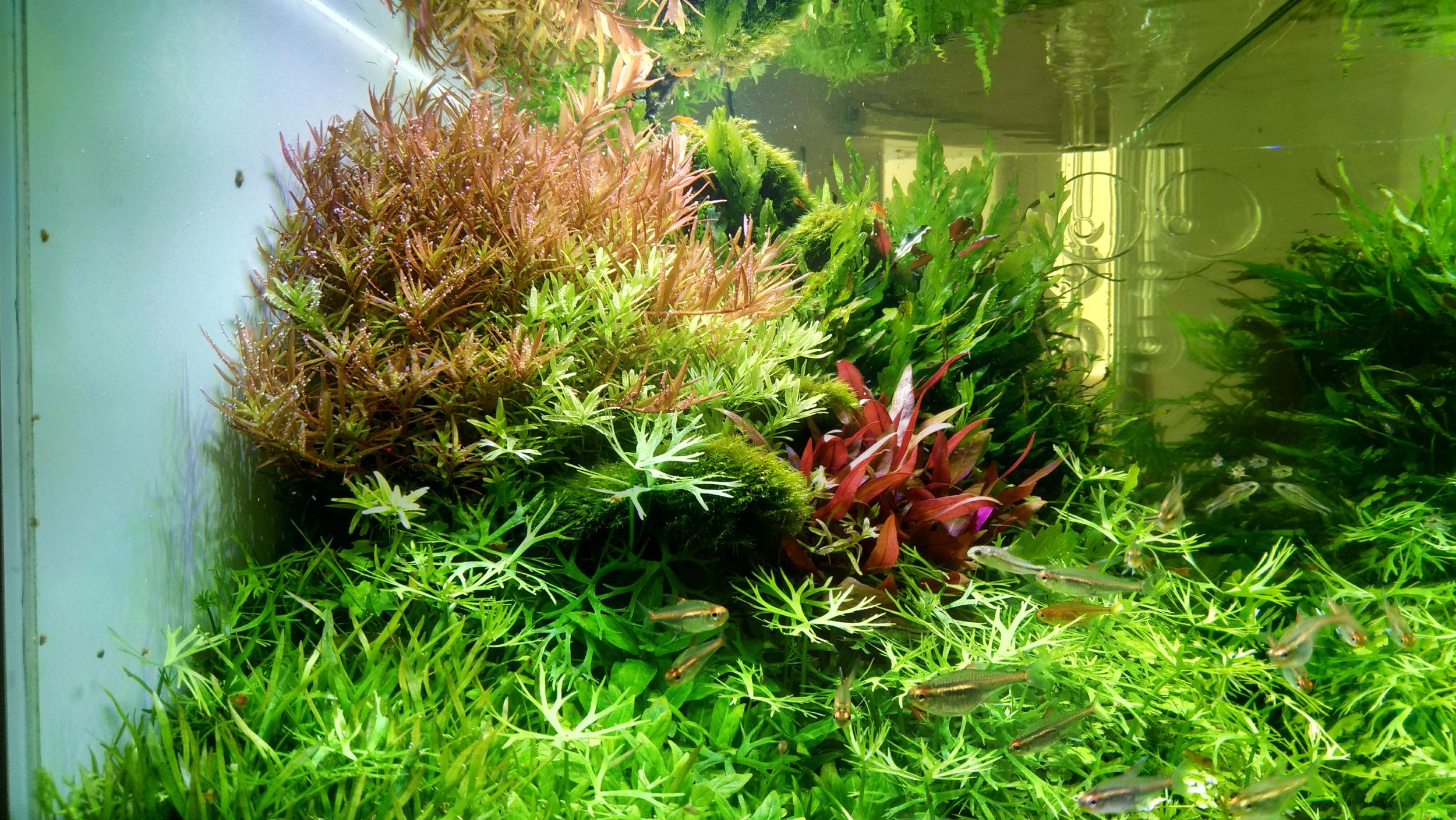 Акваріум тьфу тьфу схоже вийшов із "штопора" після бактеріального спалаху. Вода прозора, рослини в чудовій формі. Поодинокі водорості вже зникли. Рослини, з якими були труднощі ще півтора місяці тому, зараз виглядають дуже добре, стаурогін і ротала грін от прямо радують. Поживні таблетки в ґрунті працюють. Навіть здається ротала H'ra стала червоніша. Ротали я стриг менше двох тижнів тому і стриг дуже низько, тому ще повноцінна "шапка" не відросла, але кольори того, що відросло мені подобаються.