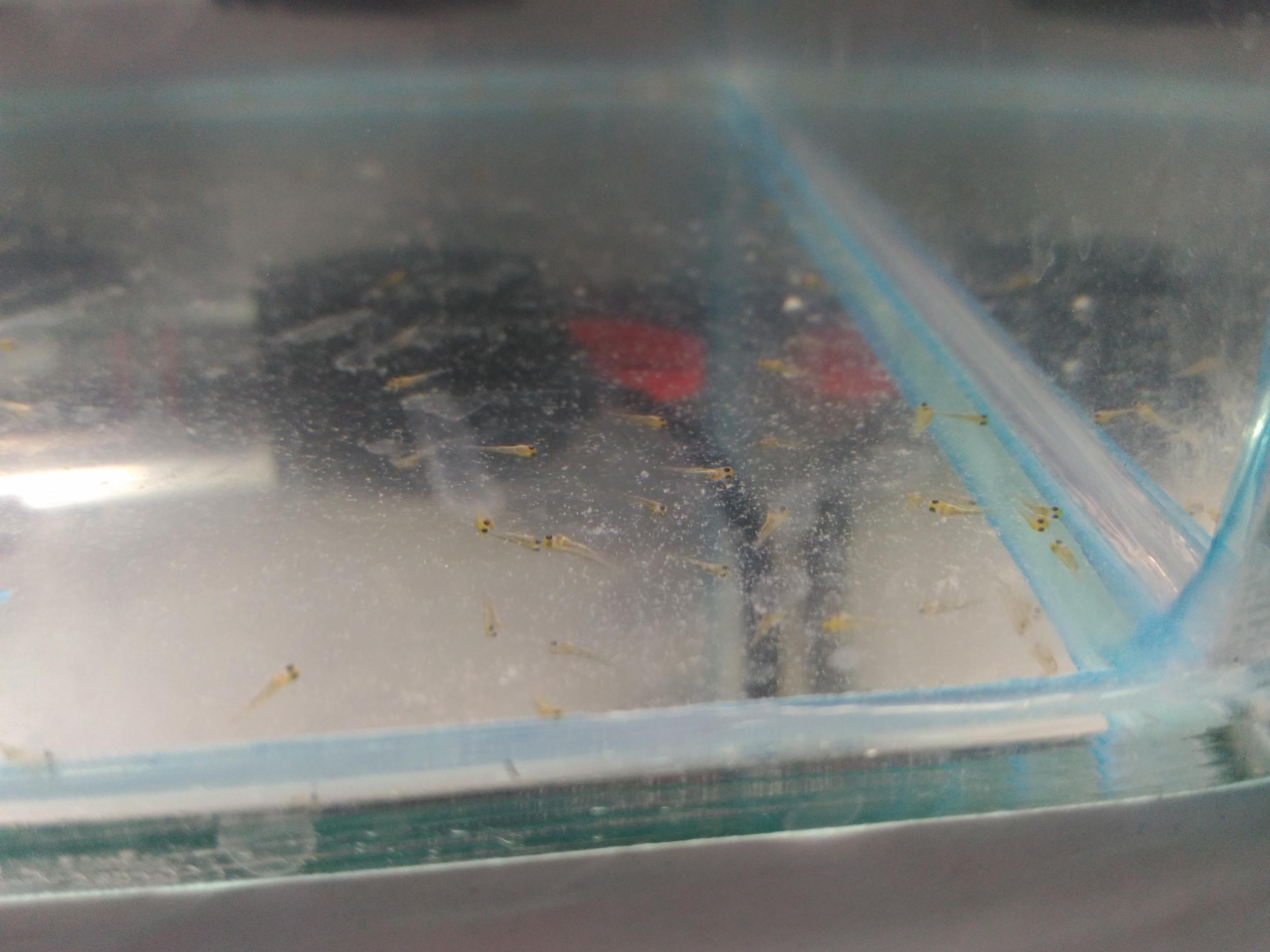 22 марта прошел нерест расборы контрастность (вода аквариумная + дистиллированная kh 3 gh8 ph 8 t 28), допустила уровень воды до 10см, добавила пару капель метиленового синего. 23 в обед личинки проклюнулись, убрала невылупившиеся погибшие икринки, 25го появились глазки и они плавали вверх-вниз, в основном лежали на дне. Видео https://youtu.be/WhC8qIcD3s0 . Я немного дала промытой инфузории, один был с полным пузиком. А к вечеру живых было чуть, на утро все лежали