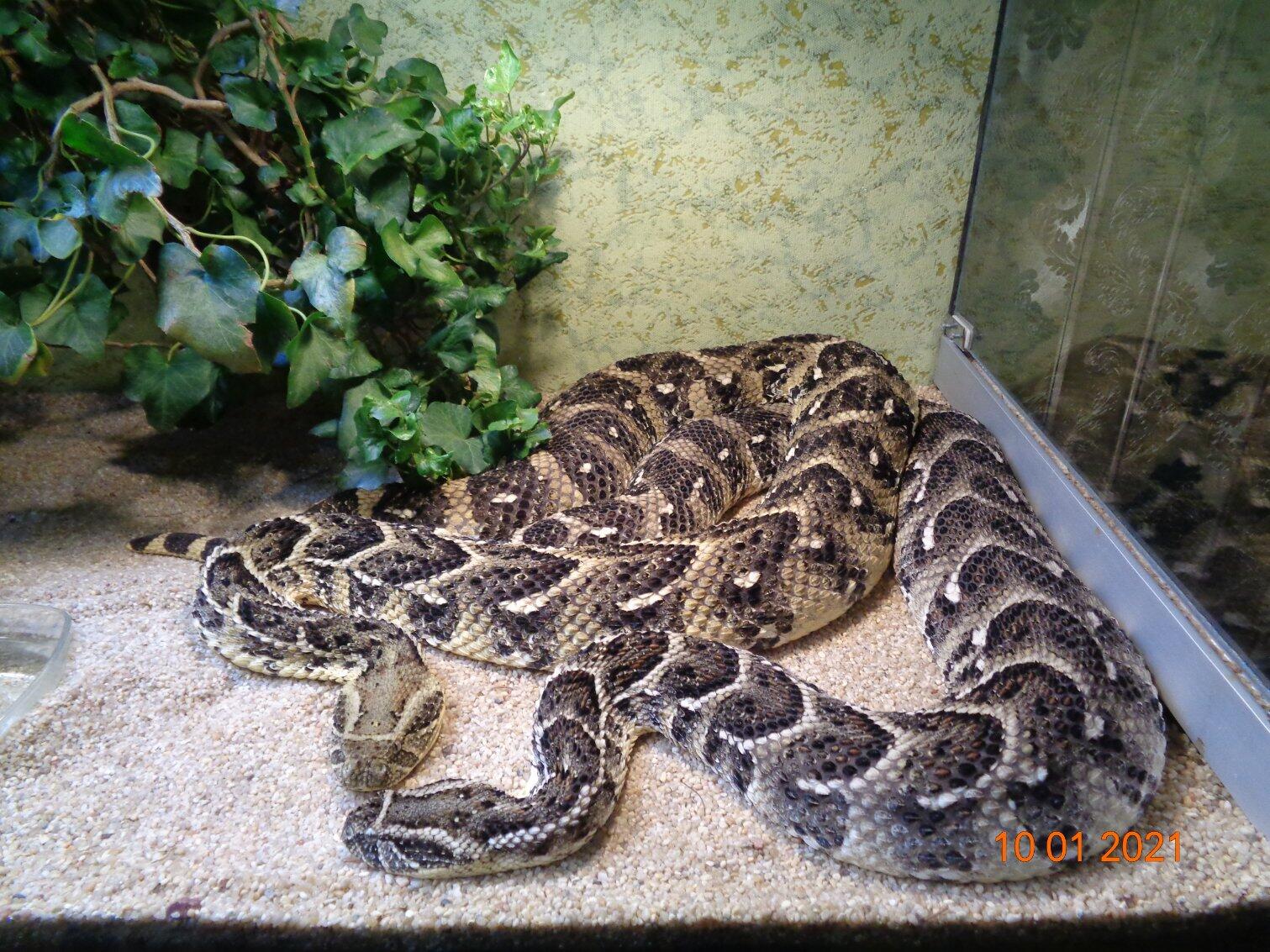 На сегодня моему террариуму с шумящей гадюкой 6 лет