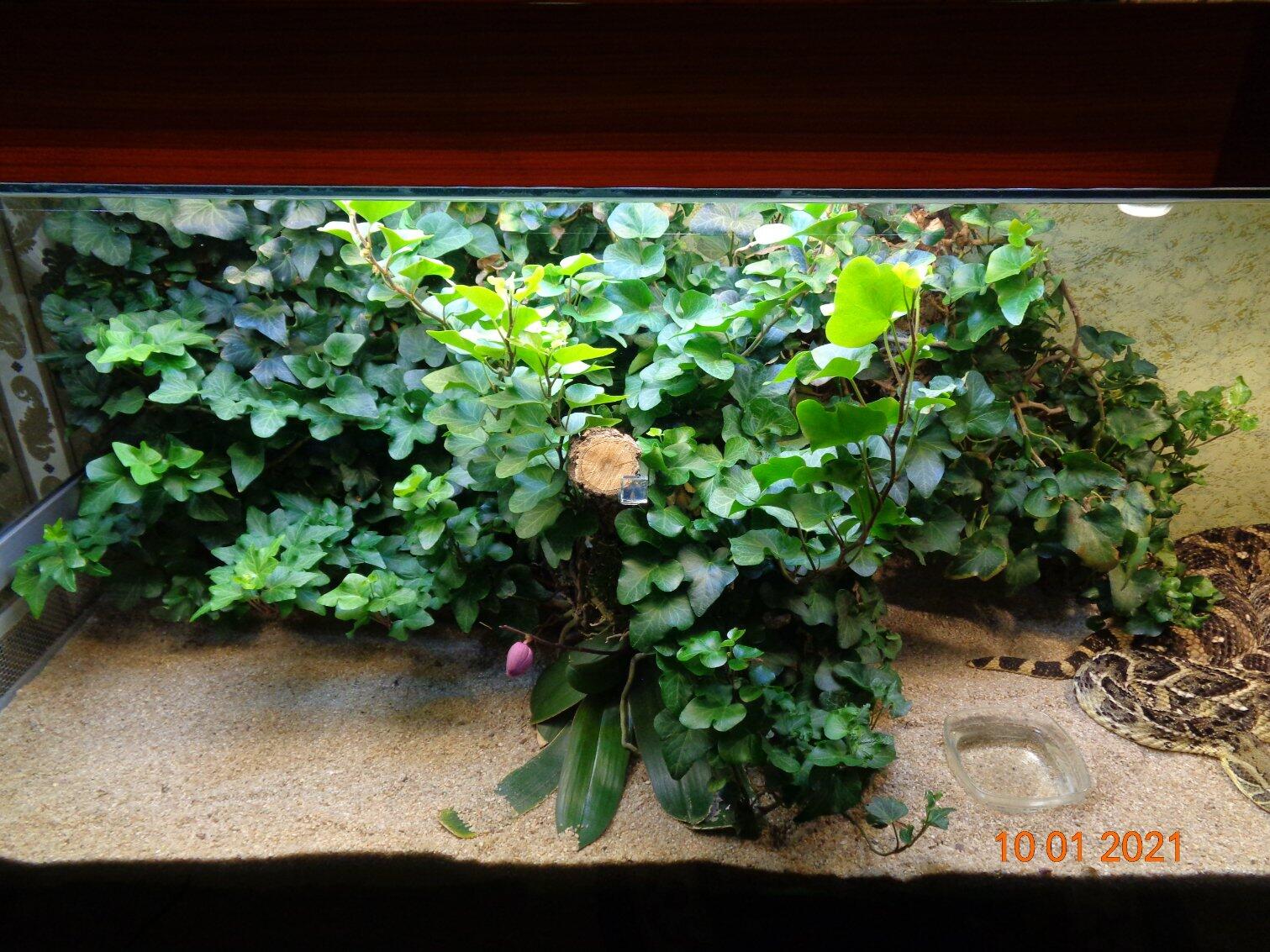 7 лет террариуму.. пенек что был слева сгнил полностью.. рассыпался в труху.. орхидеи убрал в горшки. можно было бы их посадить по другому.. но гадюки большие и мне с этими зарослями .. трудно с ними работать решил оставить больше места им..