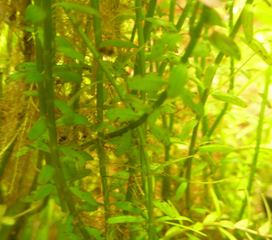 Первыми - людвигия. На старых листьях стали появляться дырки мелкие, причем чем менее освещенные листья были тем дырок было больше. Потом начинается отмирание (коричневение) стебля у верхушки, опять же не вверху а на нижних побегах.